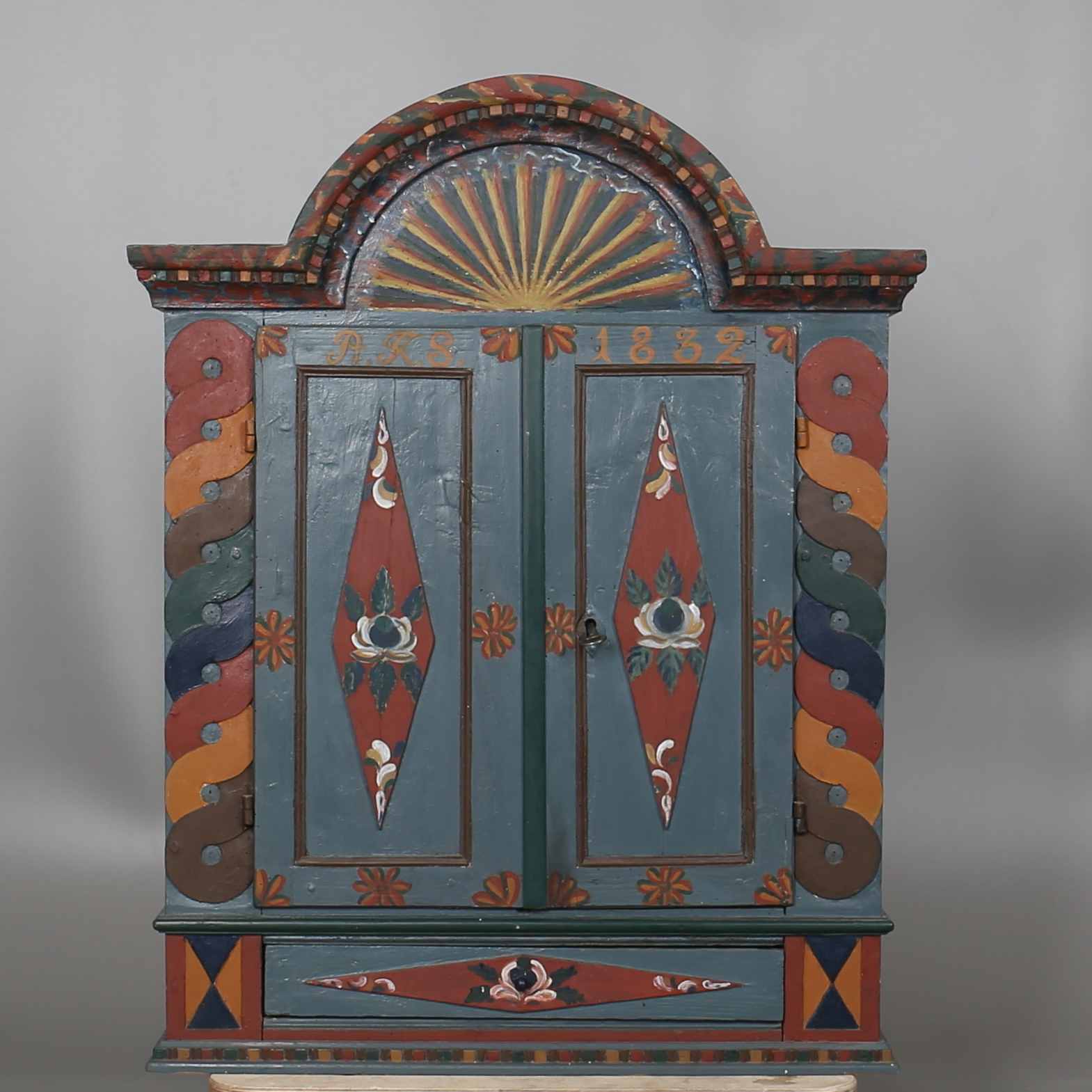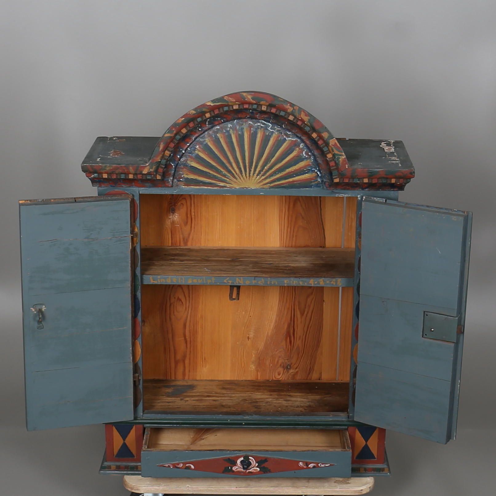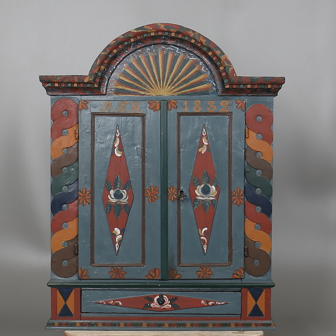 205811. DRÄNGASKÅP i trä. Allmoge. 1832.