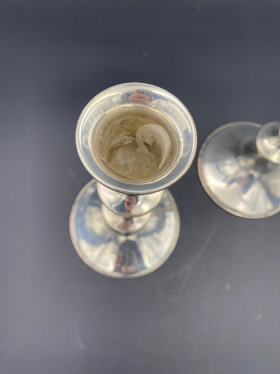 Vägt sterling, par ljusstakar, stämplat på botten. Mått: H. 18 cm. Vikt ca. 580 gram. (Ljuskronan är fylld med kitt).
