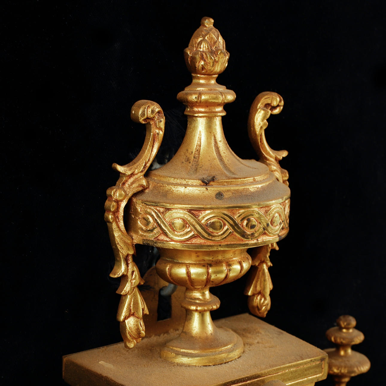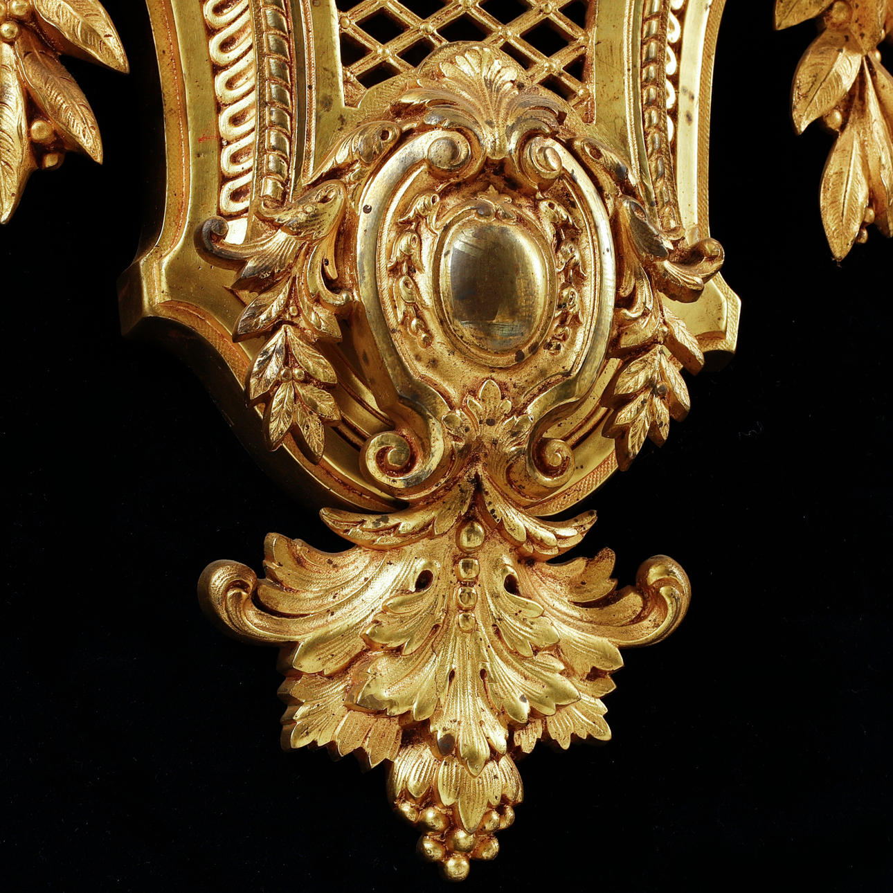 Gulmetall. Dekor av bl a akantusblad. Höjd 66 cm.