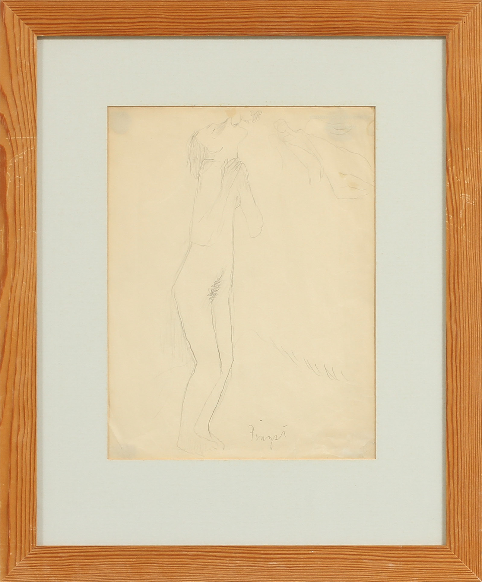 207015. RAGNAR SANDBERG. TILLSKRIVEN. "Pingst", blyerts på papper.