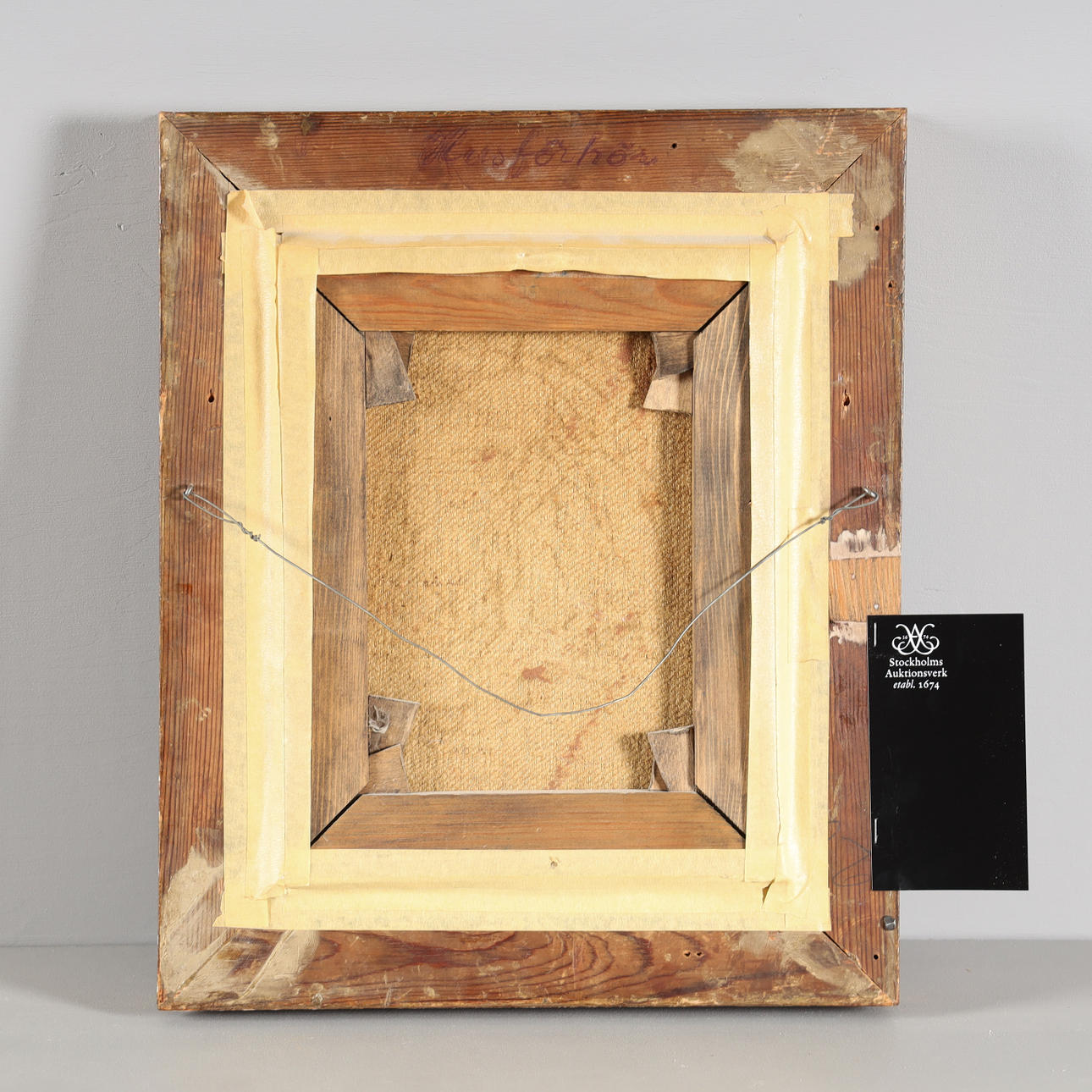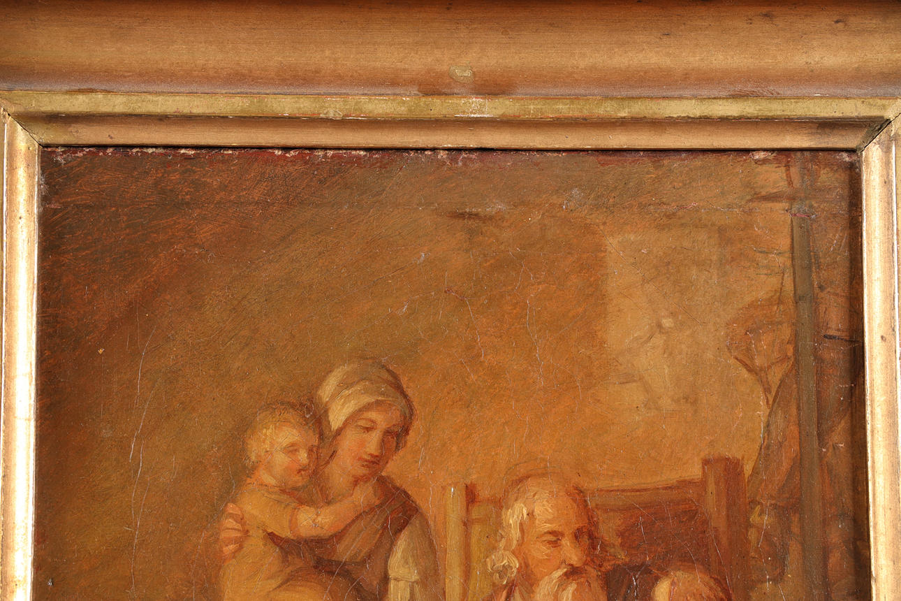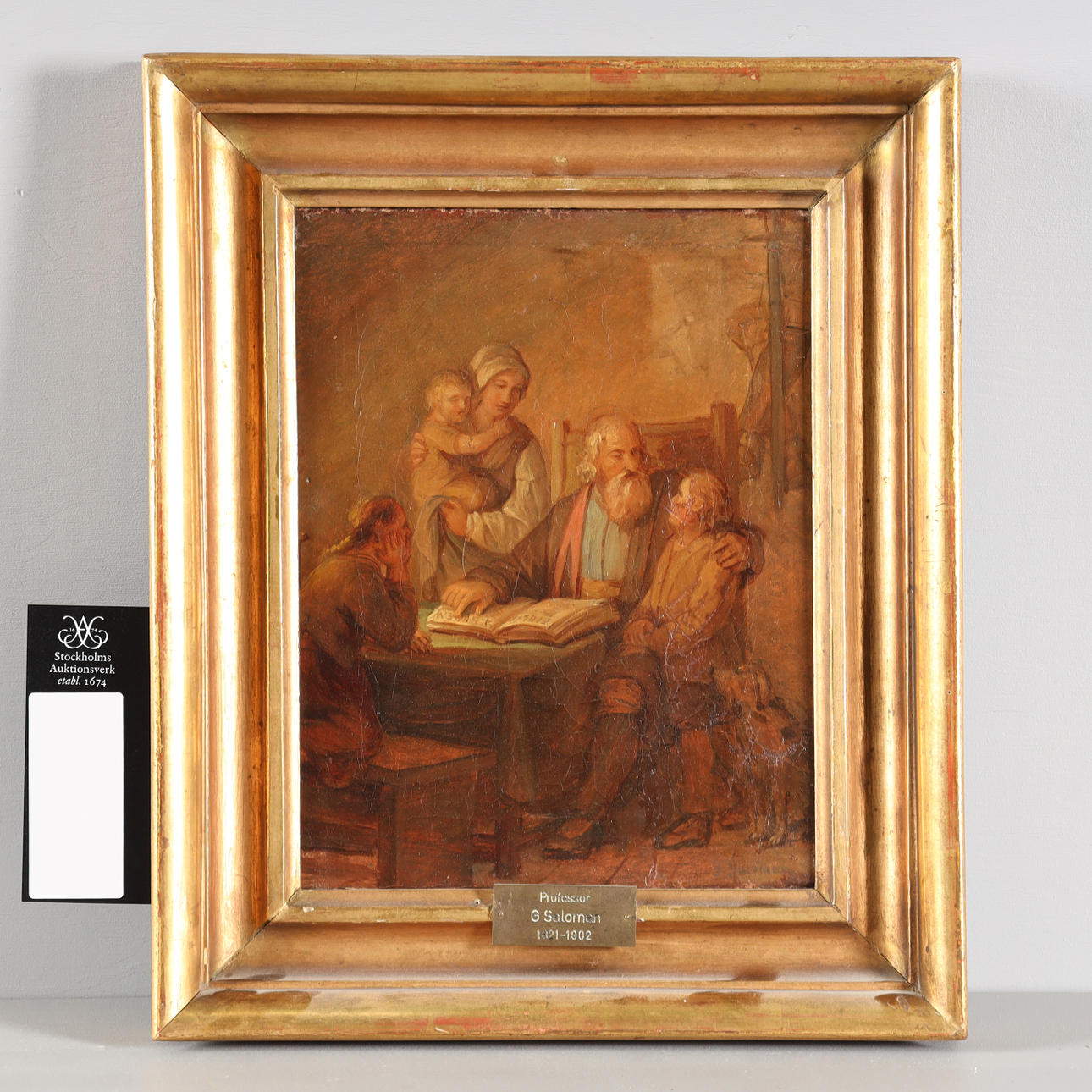 "Husförhör", olja på duk. Signerad. Ca 29 x 22 (41 x34 cm).