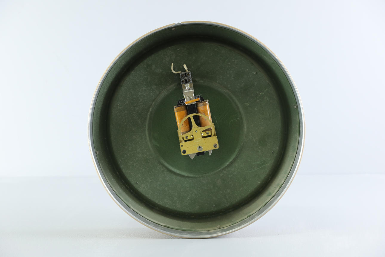 Ljus plåt i ramen. Diameter 37 cm.