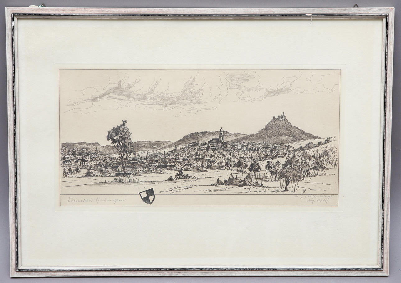 2078903. OIDENTIFIERAD KONSTNÄR. etsning, "Stadt Hechingen", signerad.