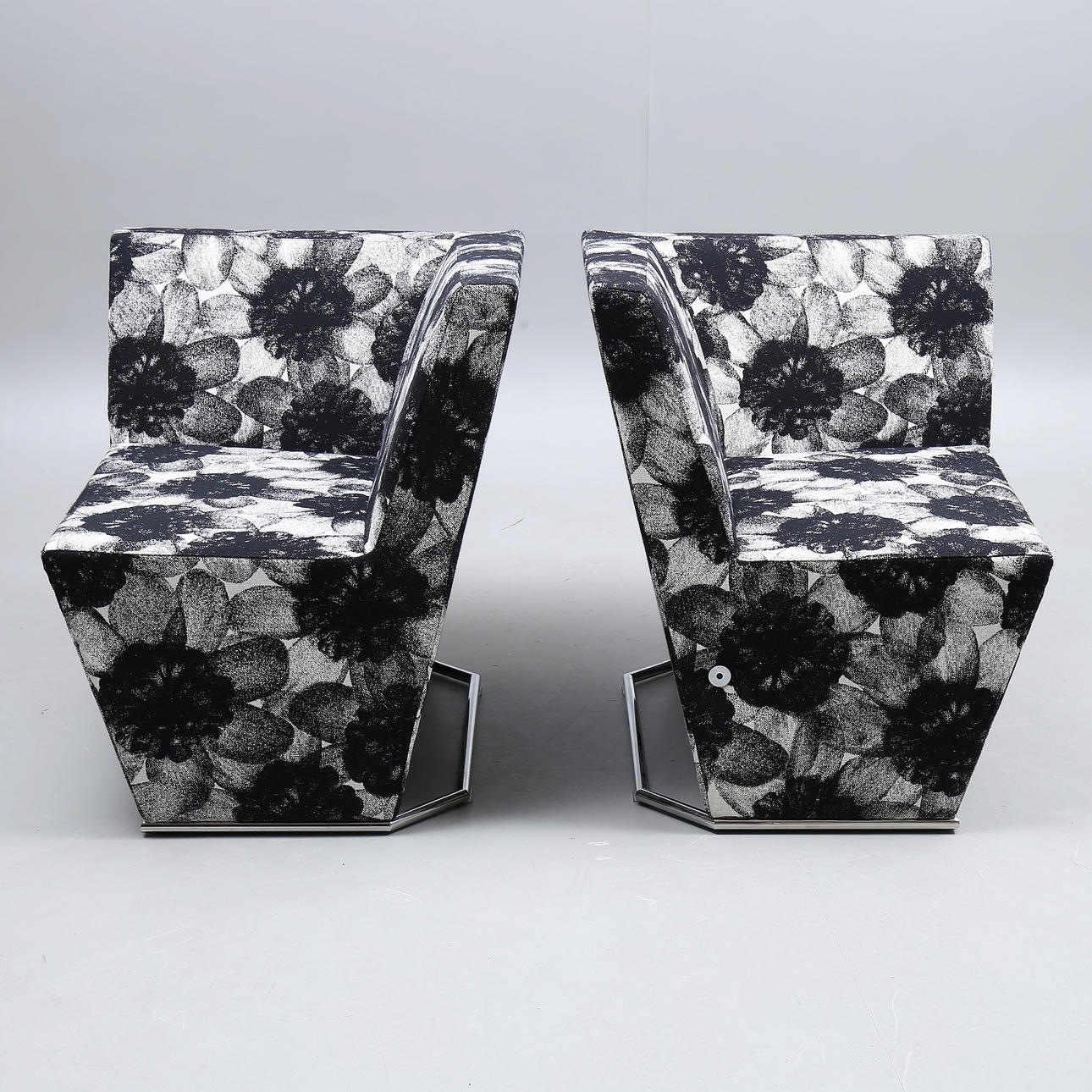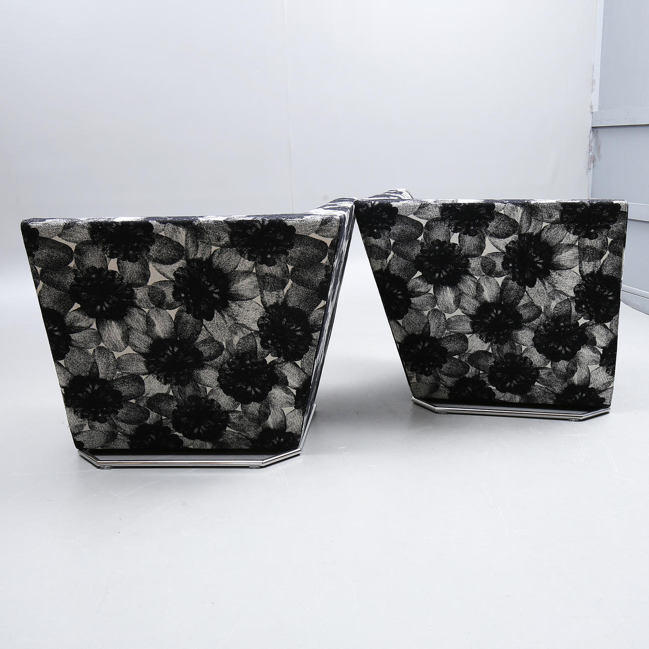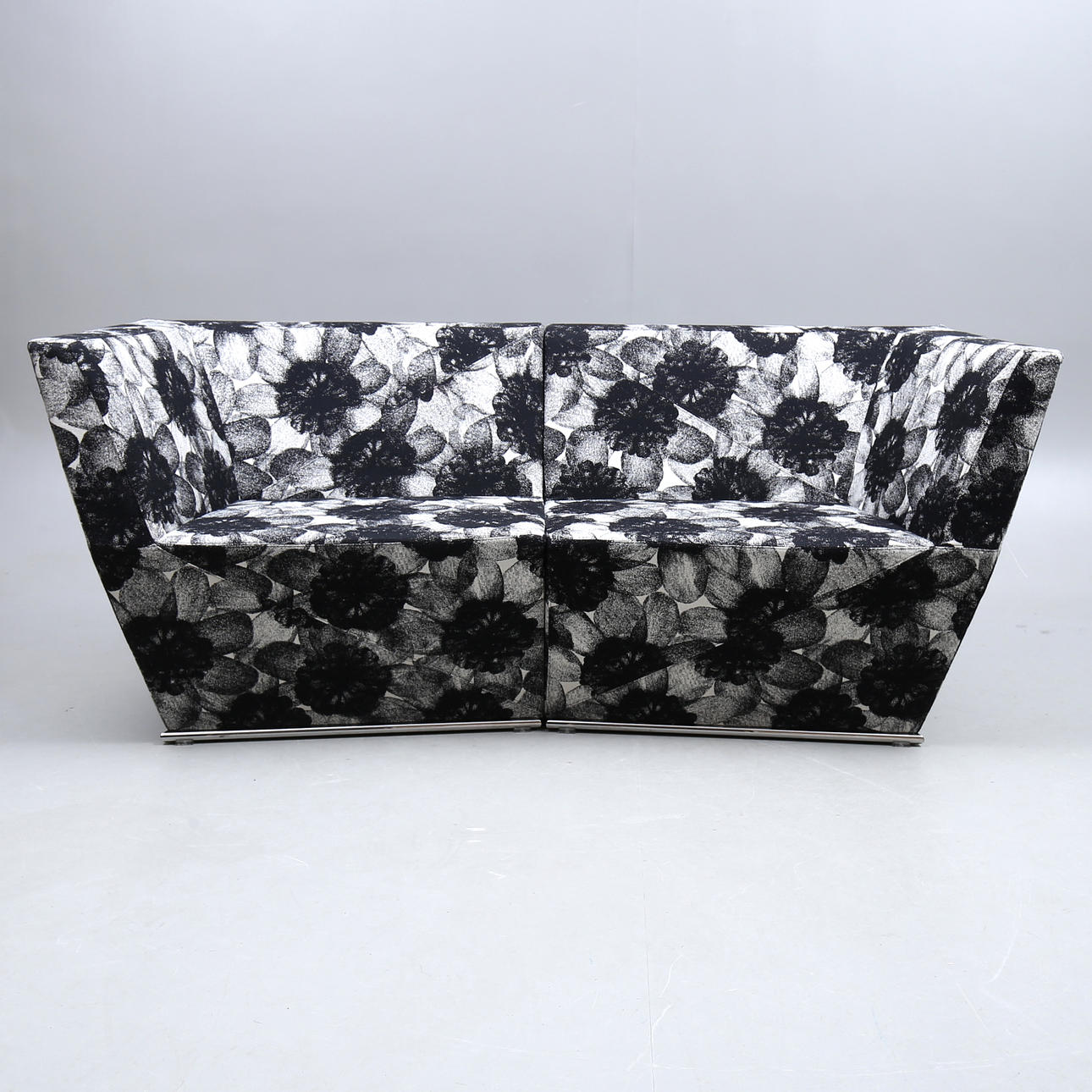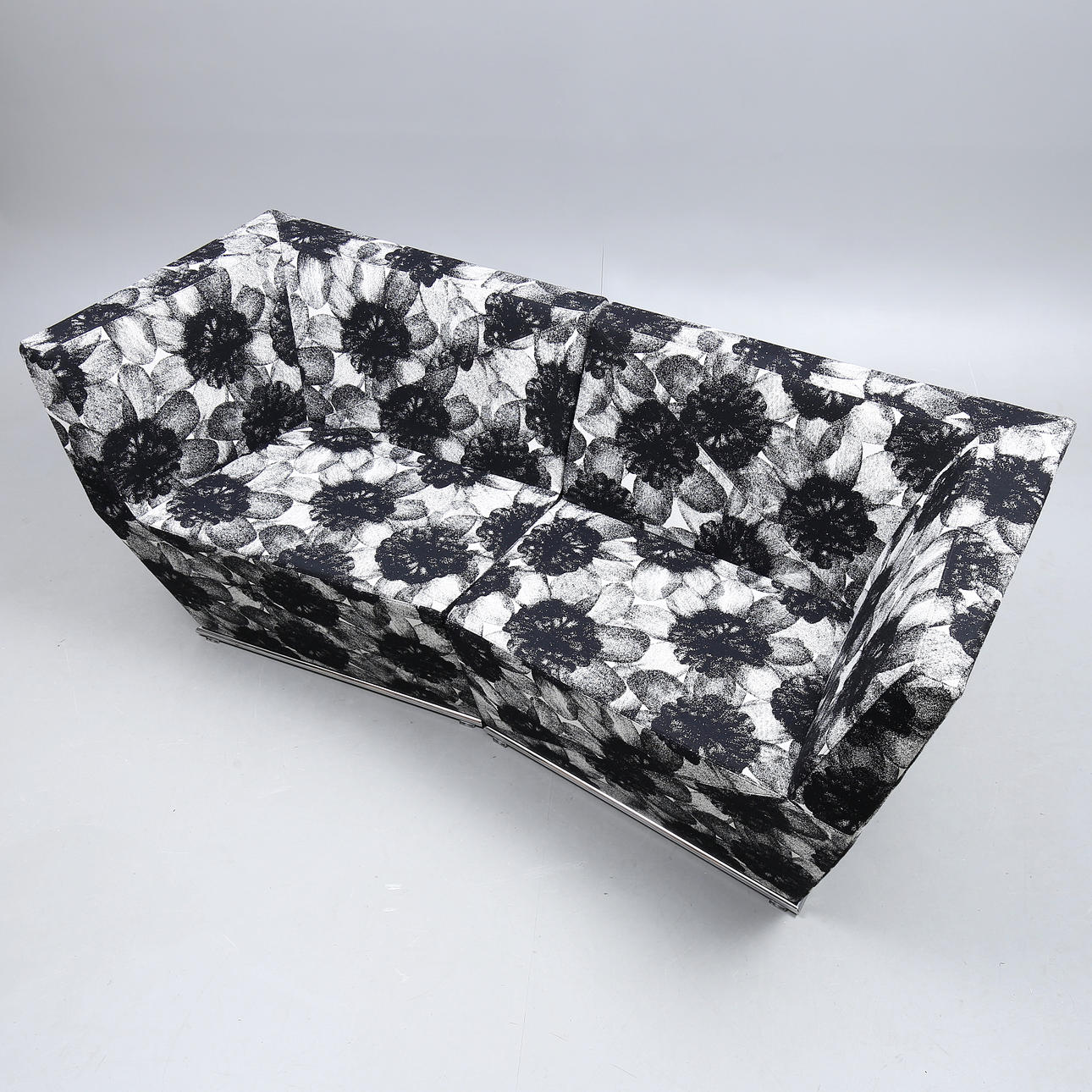 Modulsoffa, två sektioner, textilklädsel, benställning i kromad metall.