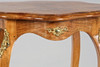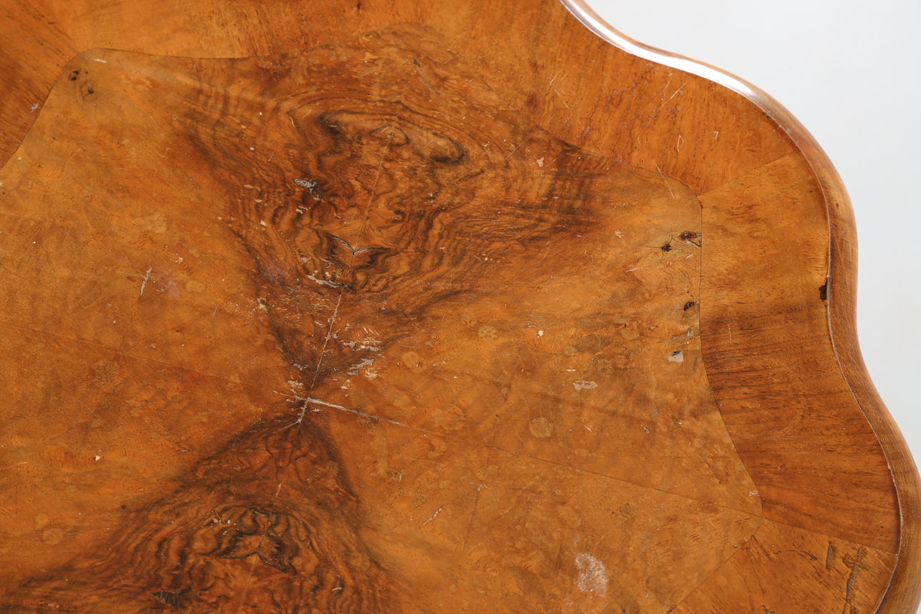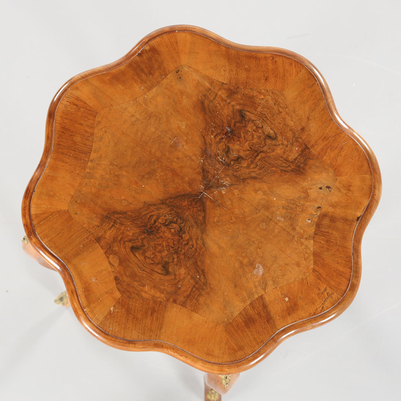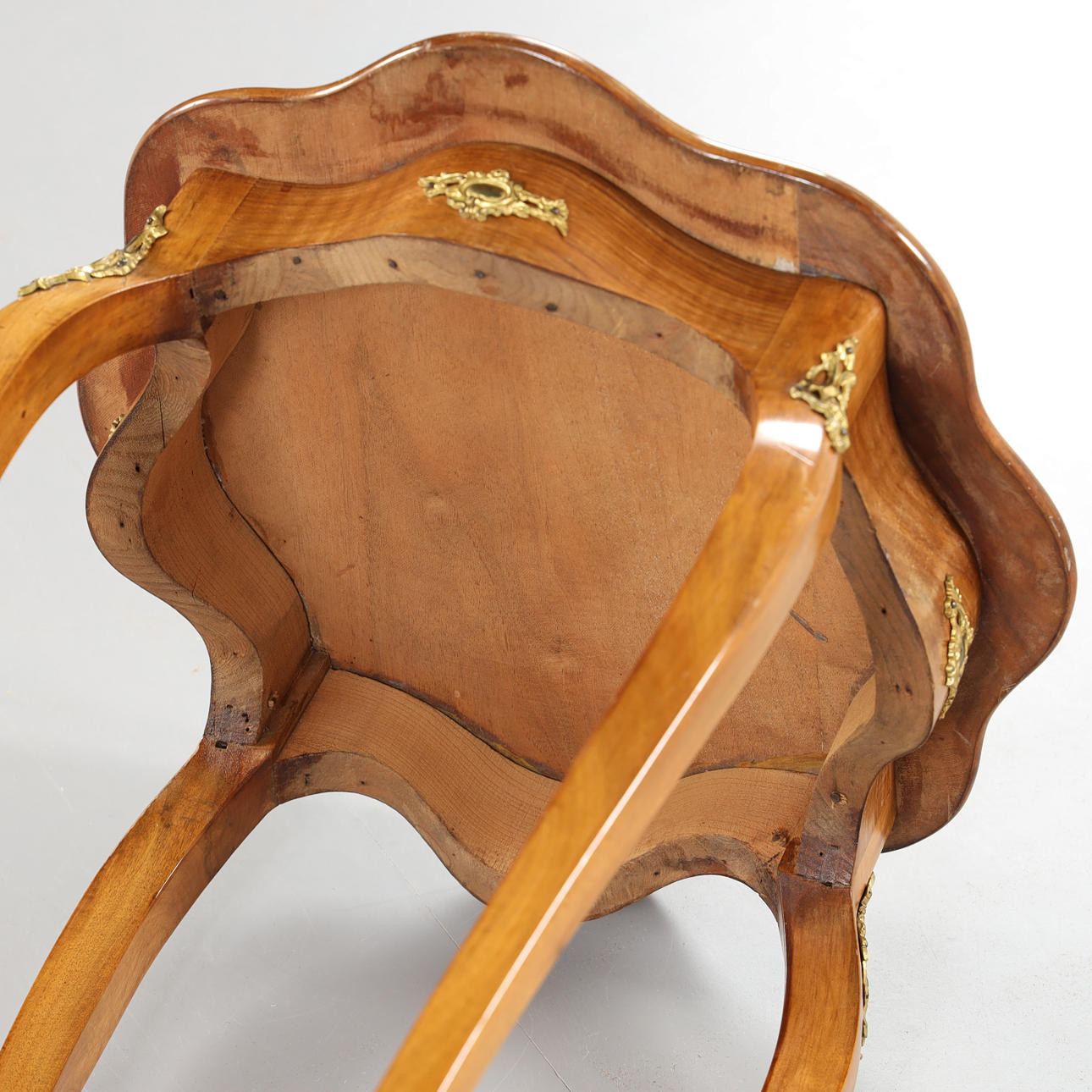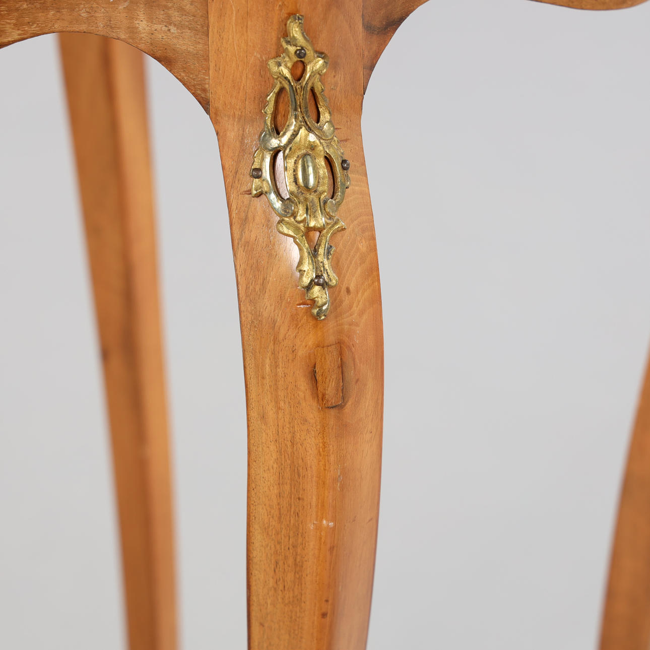 Underrede i mahogny, bordsskia med rotfaner. Beslag i gjuten mässing. 1800-talets andra hälft. Höjd ca 73 cm, diameter ca 50 cm.