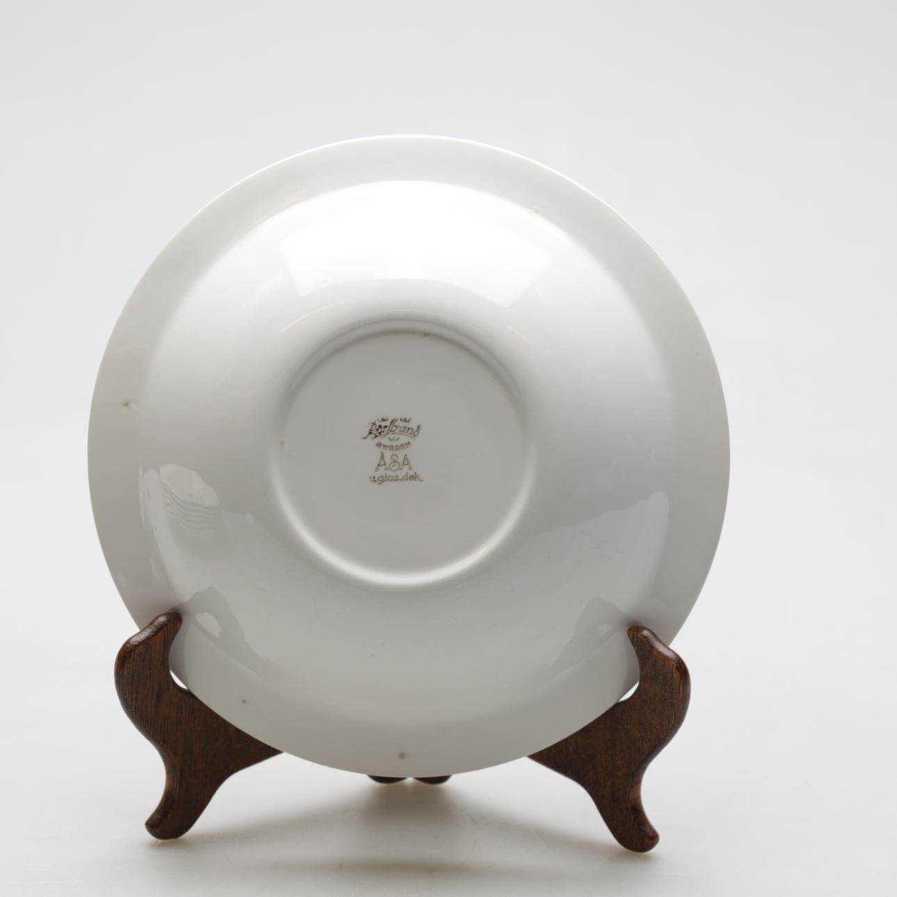 7 djupa tallrikar, diameter ca 20 cm. 2 uppläggningsfat, längd ca 29-35 cm. 1 stekfat, längd ca 24 cm.