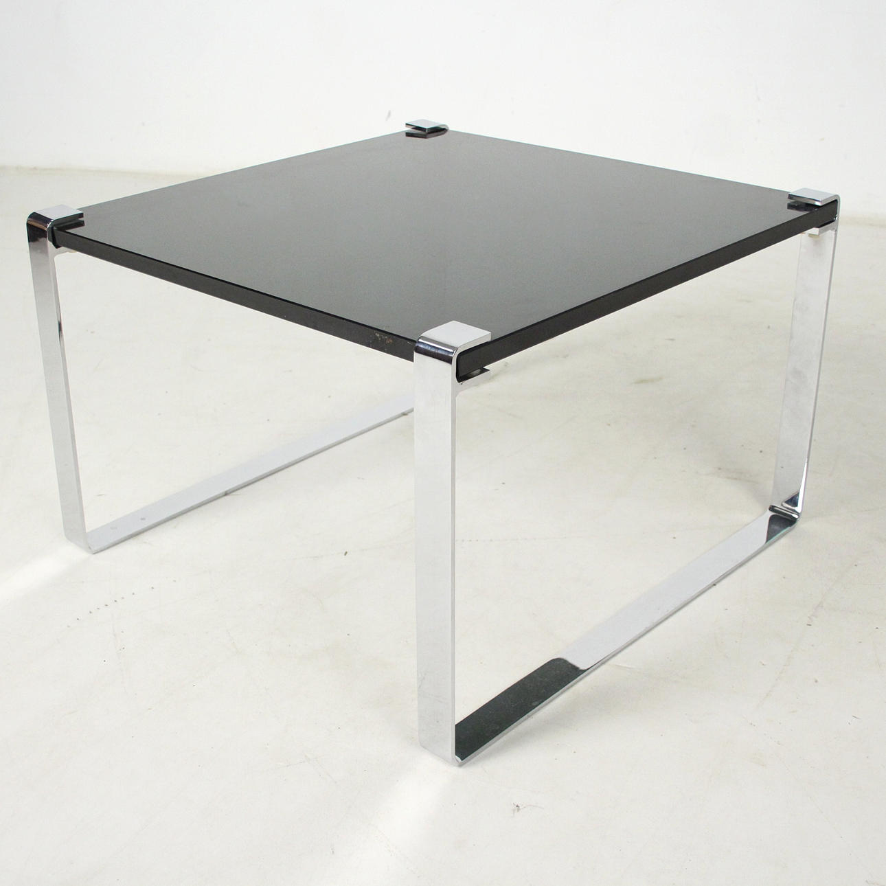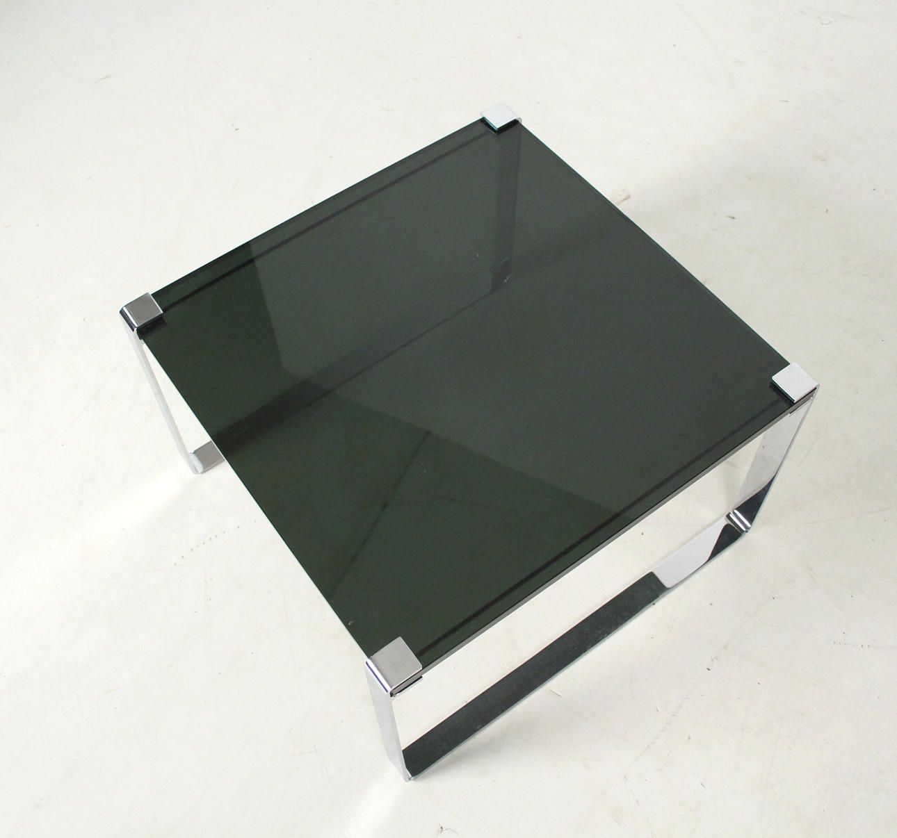 sidobord förkromad metall, svart glas