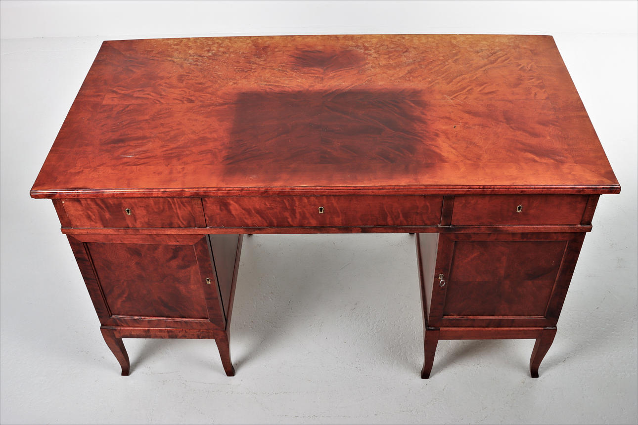 Skrivbord, två hurtsar med löstagbar överliggande skiva med lådor. Fristående. Sverige omkring 1930.