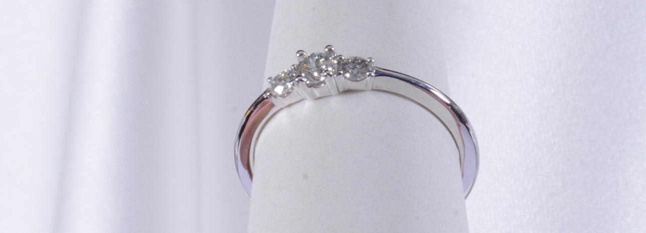 Besatt med 3 st brijantslipade diamanter på totalt 0,35ct Vikt 2,1 gram, storlek 17,5.