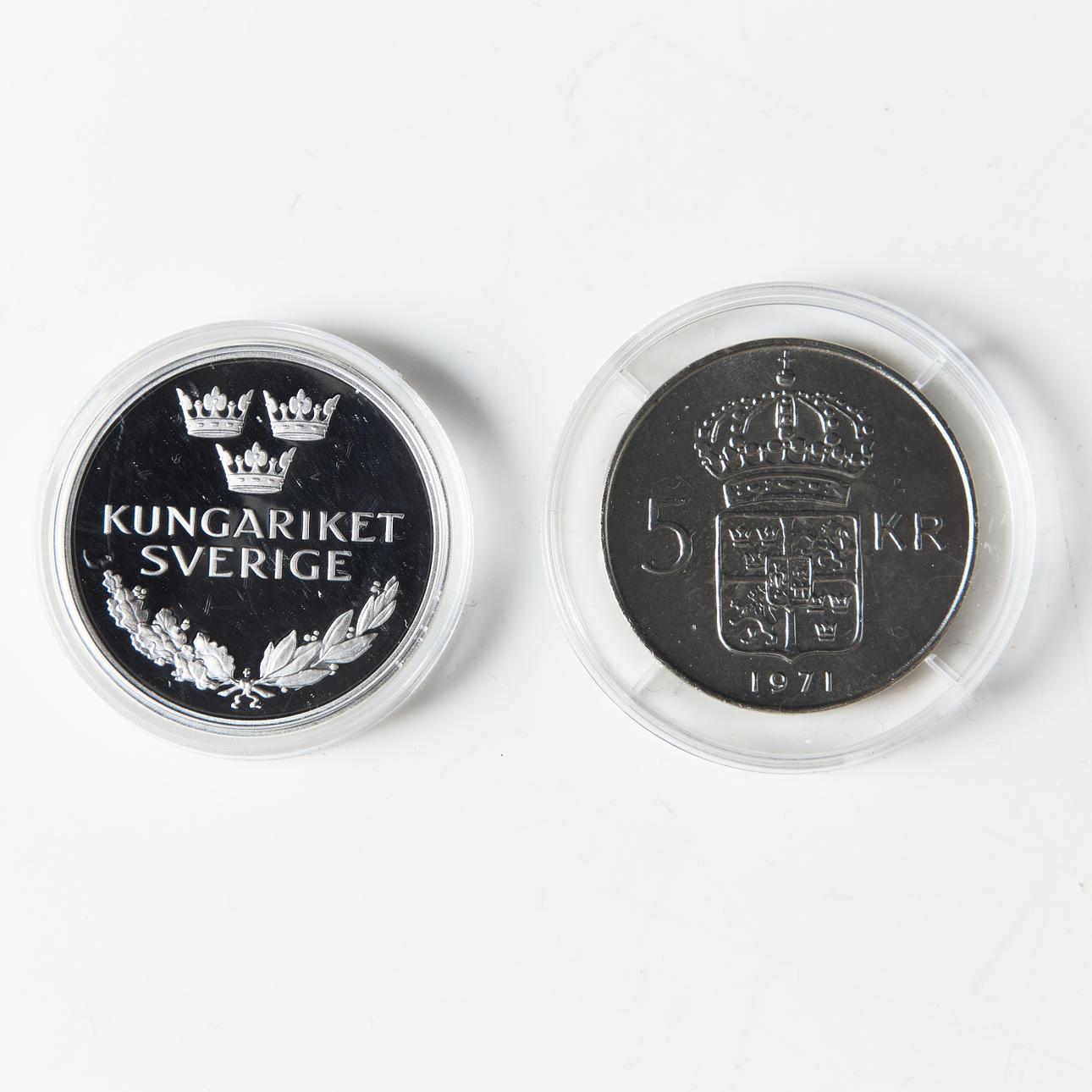 27 mynt ur serien "Kungariket Sverige" totalvikt 735 gram.