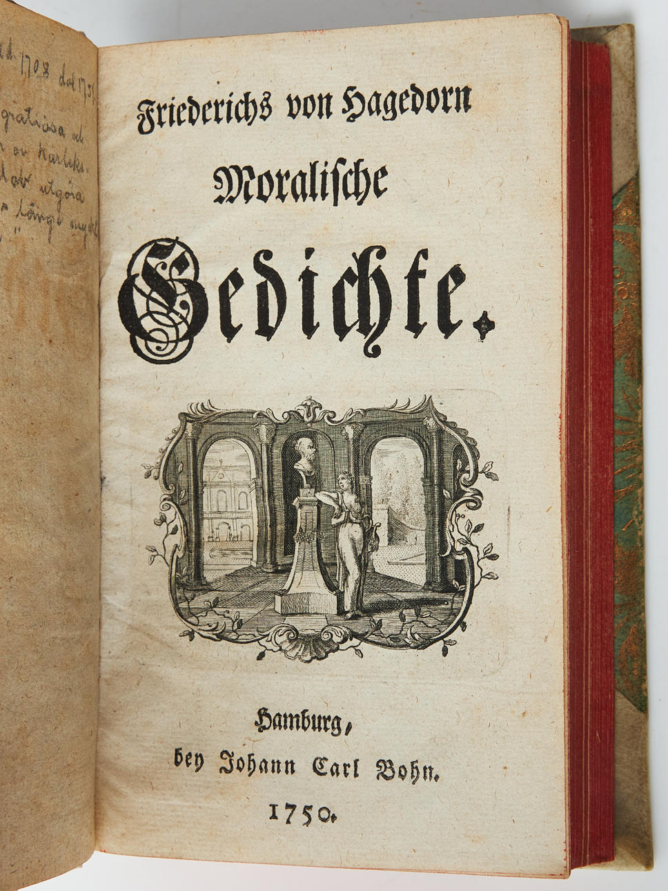 SAMLING ÄLDRE BÖCKER (10). Bl.a. Gessner, Samuel Gessners Schriften, I-III, (1795); von Hagedorn, Moralische Gedichte (1750) + S:e, Versuch von Schäfer-Gedichten (1748) + S:e, Oden, Lieder und Erzählungen in zwey Büchern (1750); Batteux, Cours de belles lettres distribué par exercices (1747); Marmontel, Oeuvres posthumes I-III (1805); Memoires et réflexions I-II (1755).