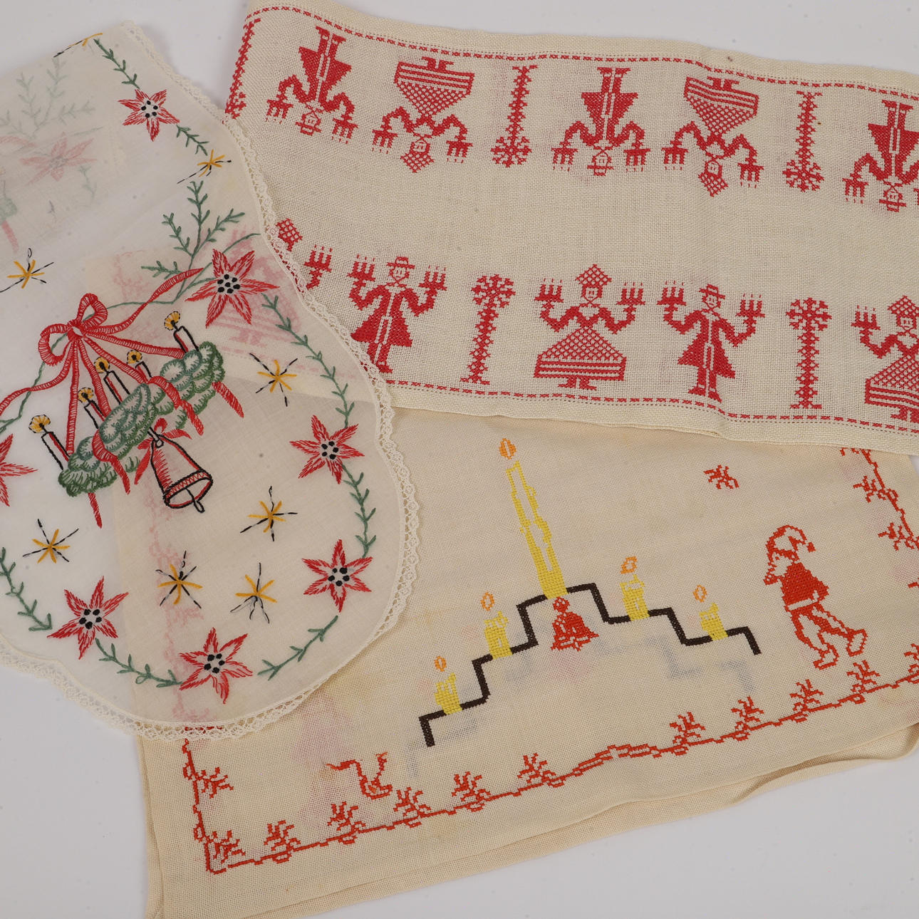 JULDUKAR, 5 stycken, broderade, 1900-tal.
