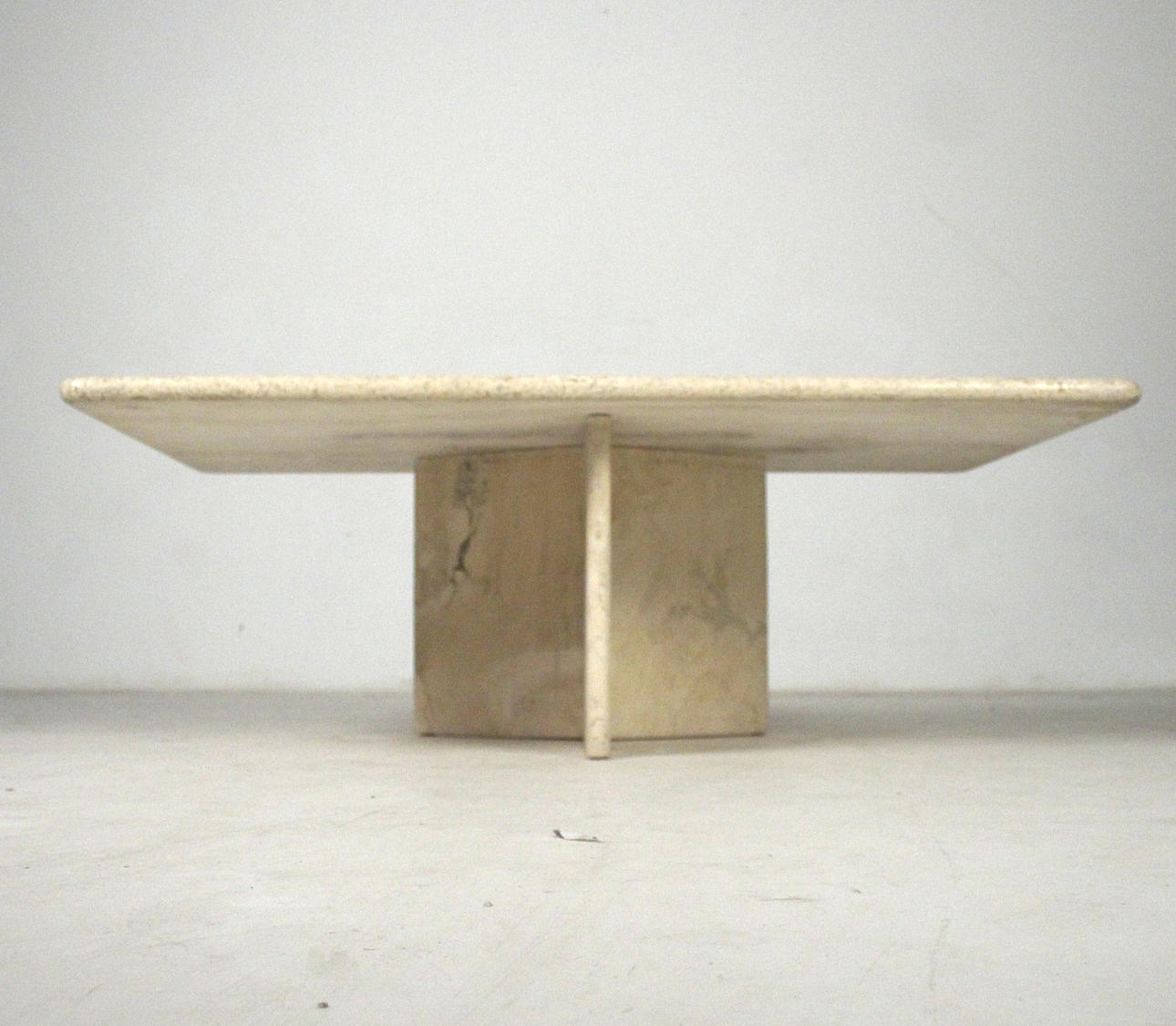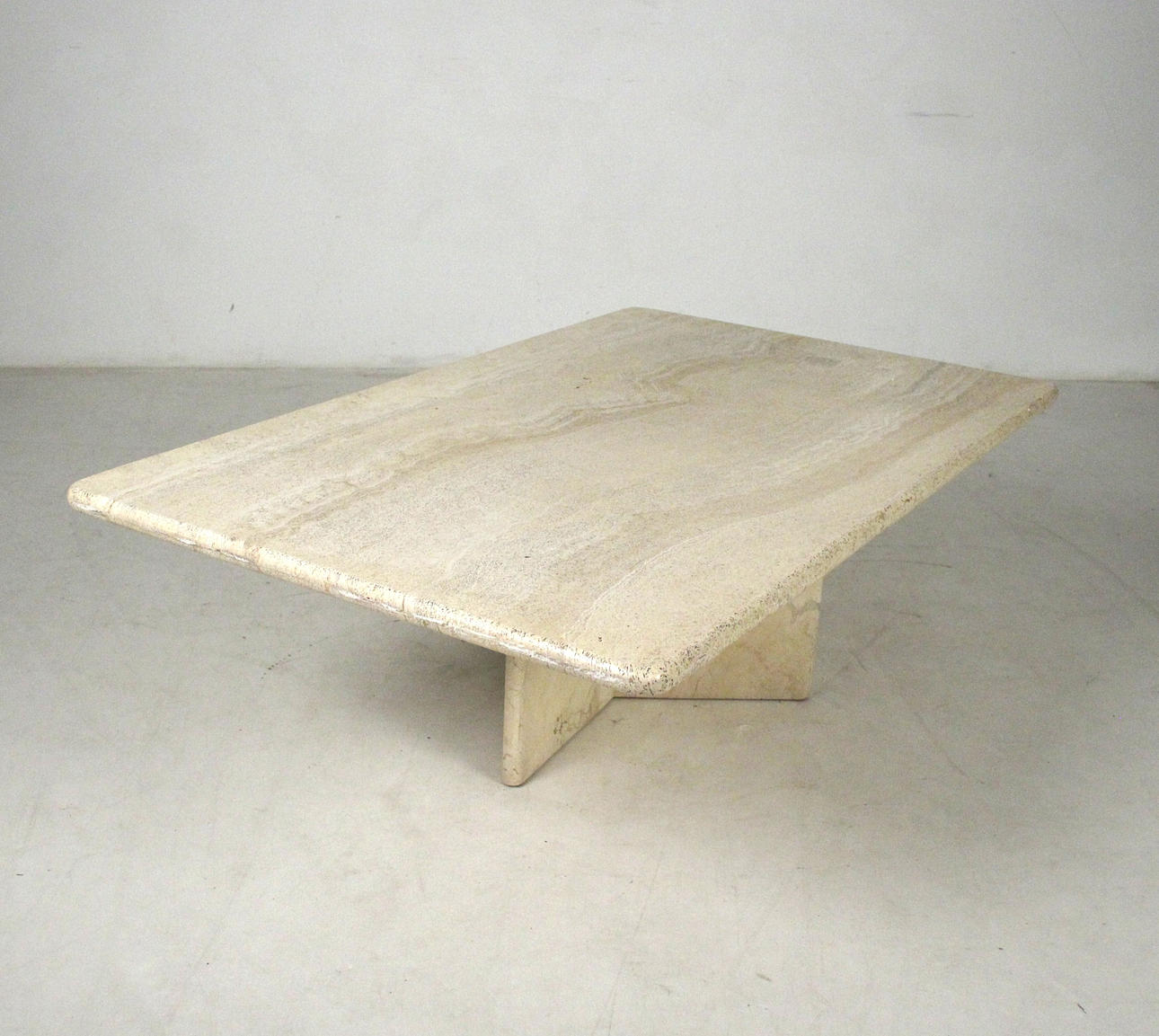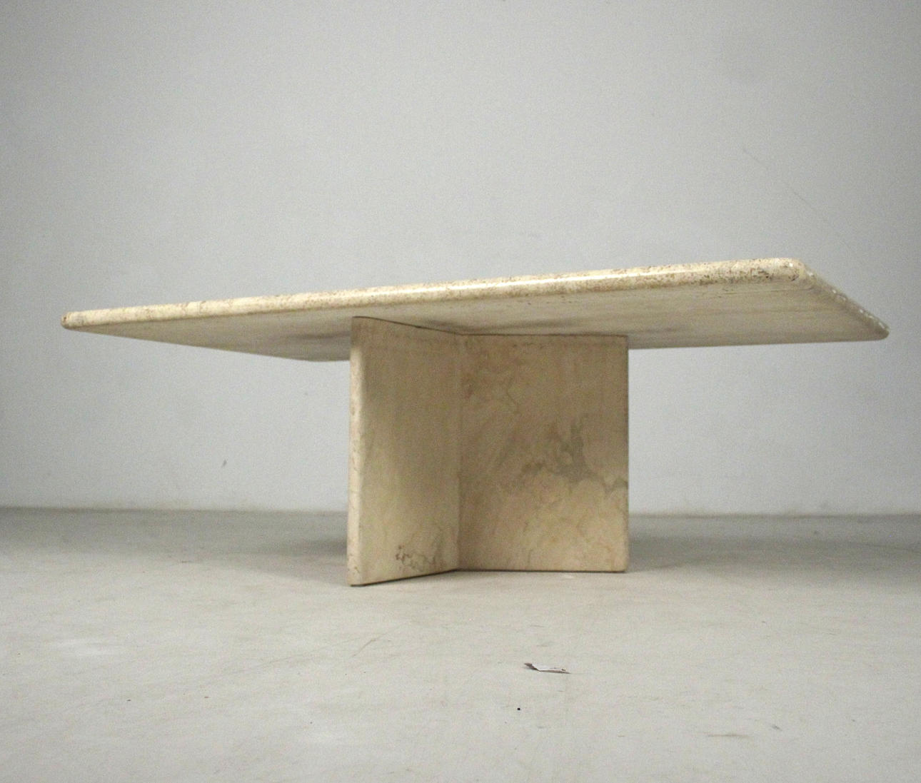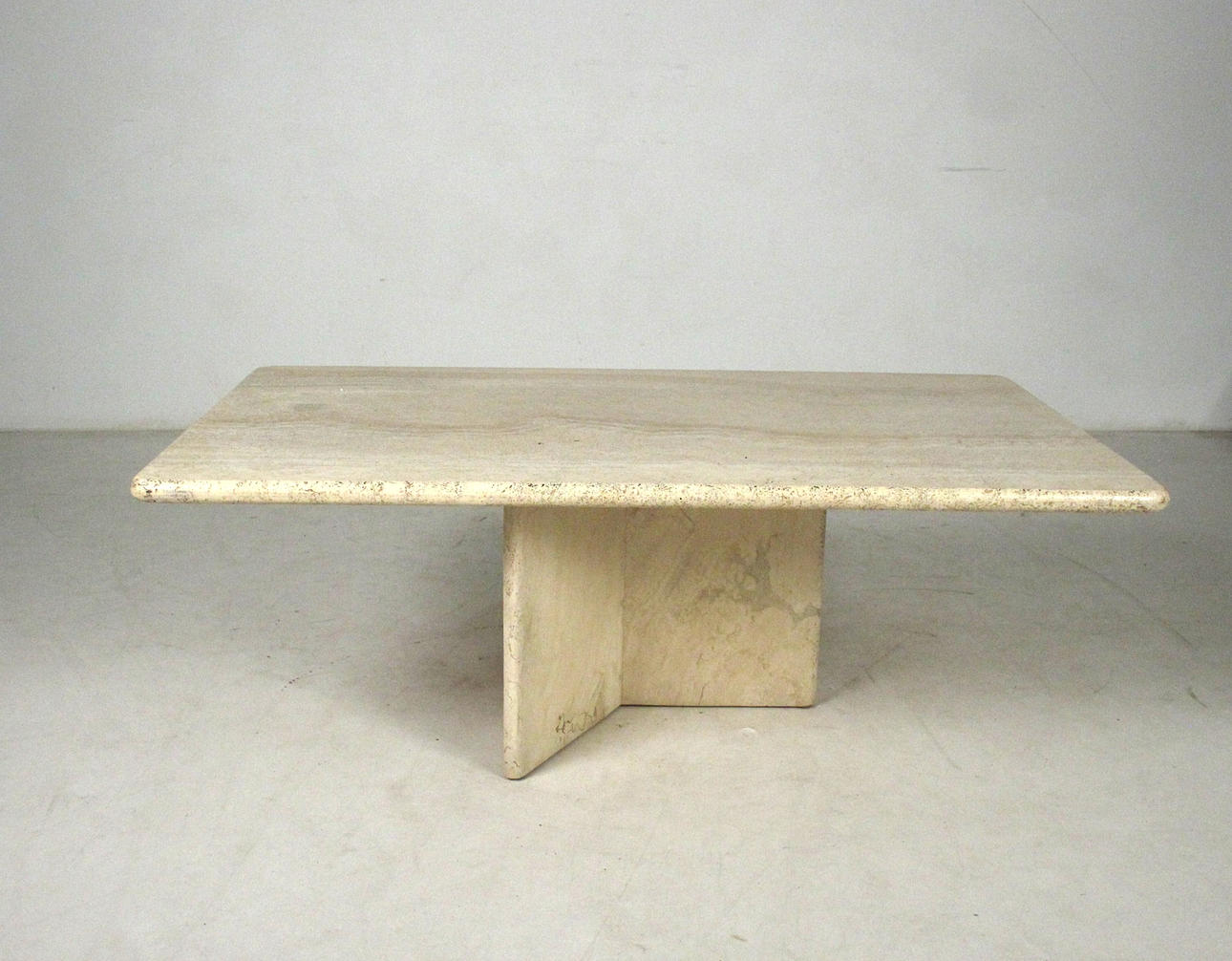 Bord/soffbord, travertin, 1970-tal. Solid konstruktion med en trestjärnig ram och en lös rektangulär platta. H. 45 cm, B. 130 cm, djup 80 cm.