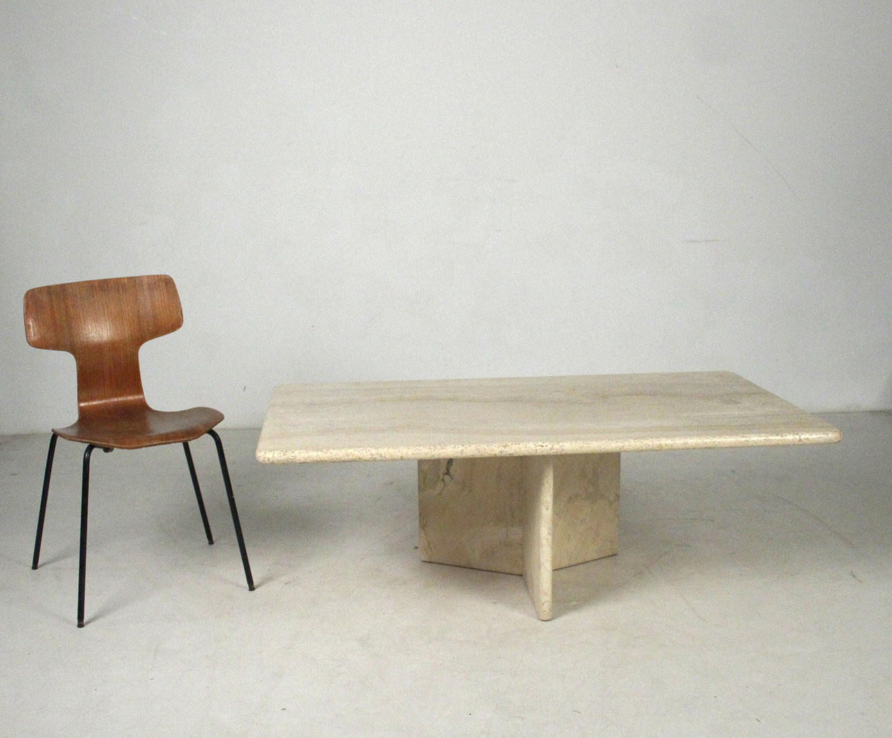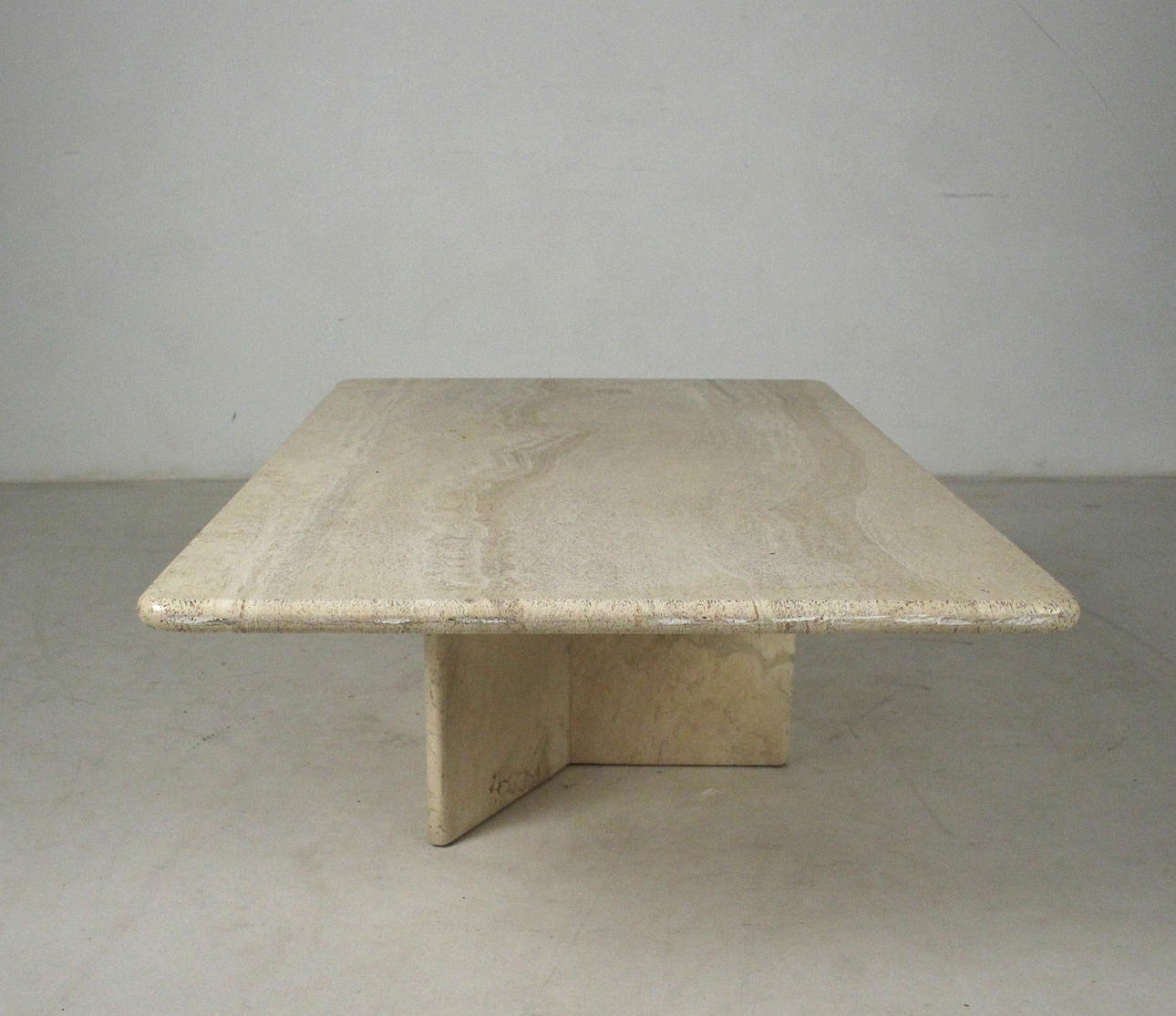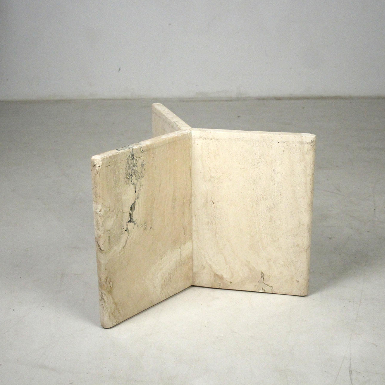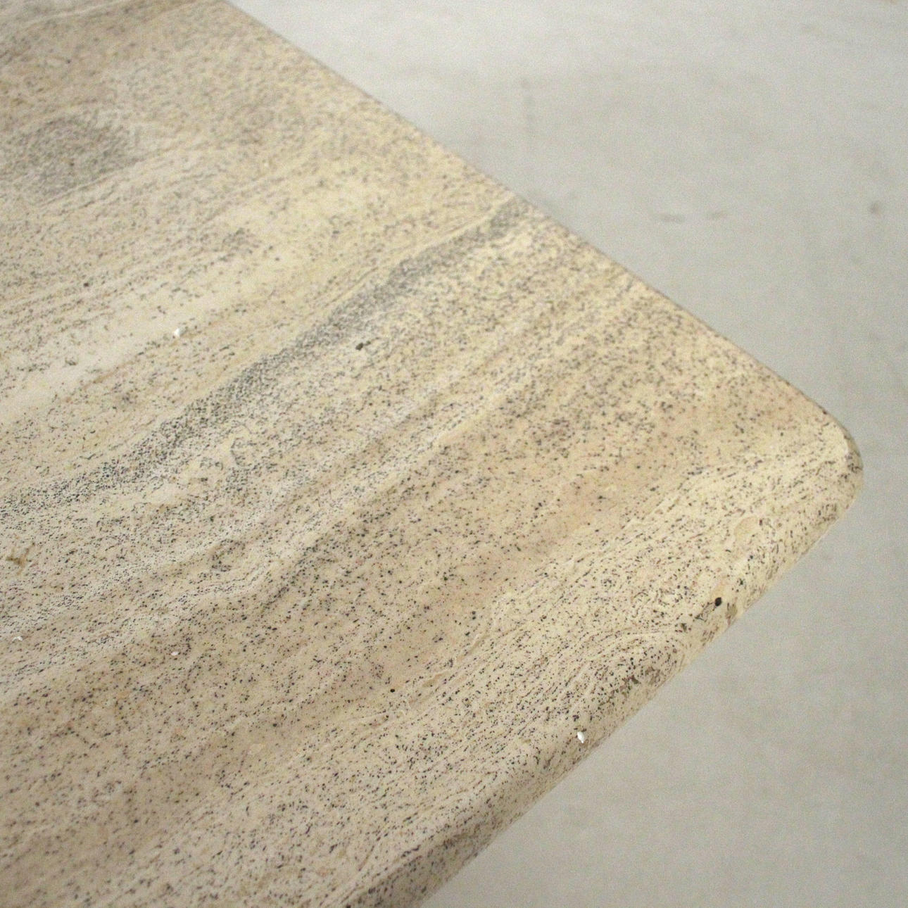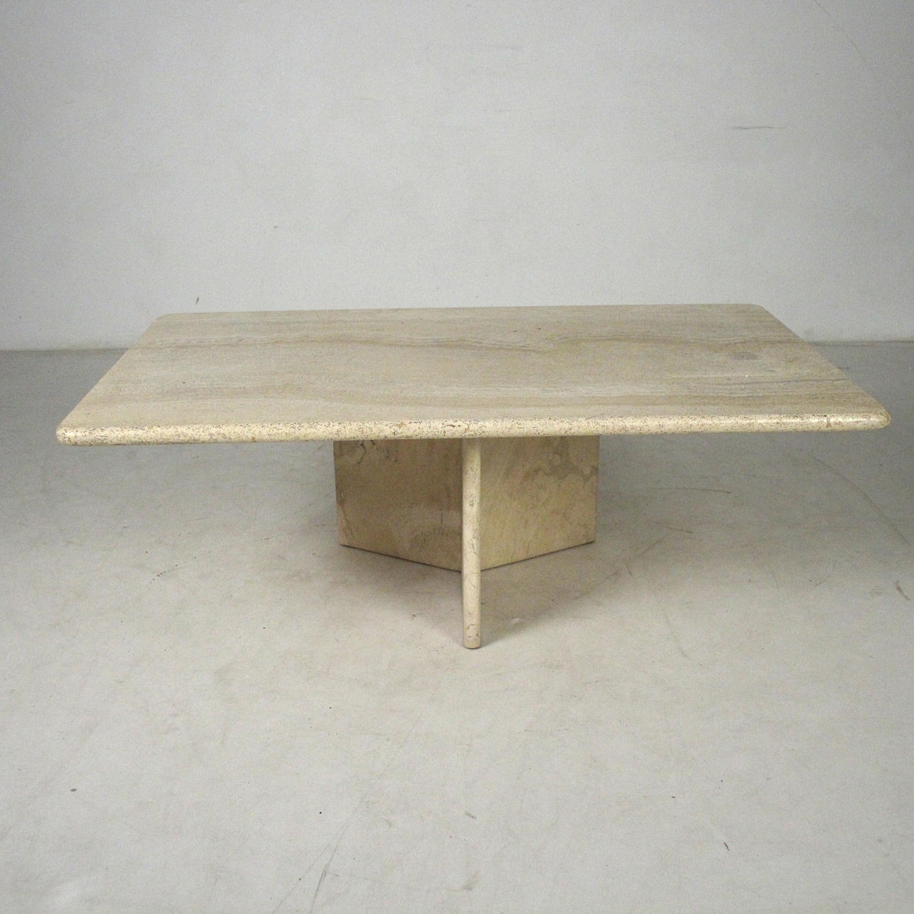 Bord/soffbord, travertin, 1970-tal. Solid konstruktion med en trestjärnig ram och en lös rektangulär platta. H. 45 cm, B. 130 cm, djup 80 cm.