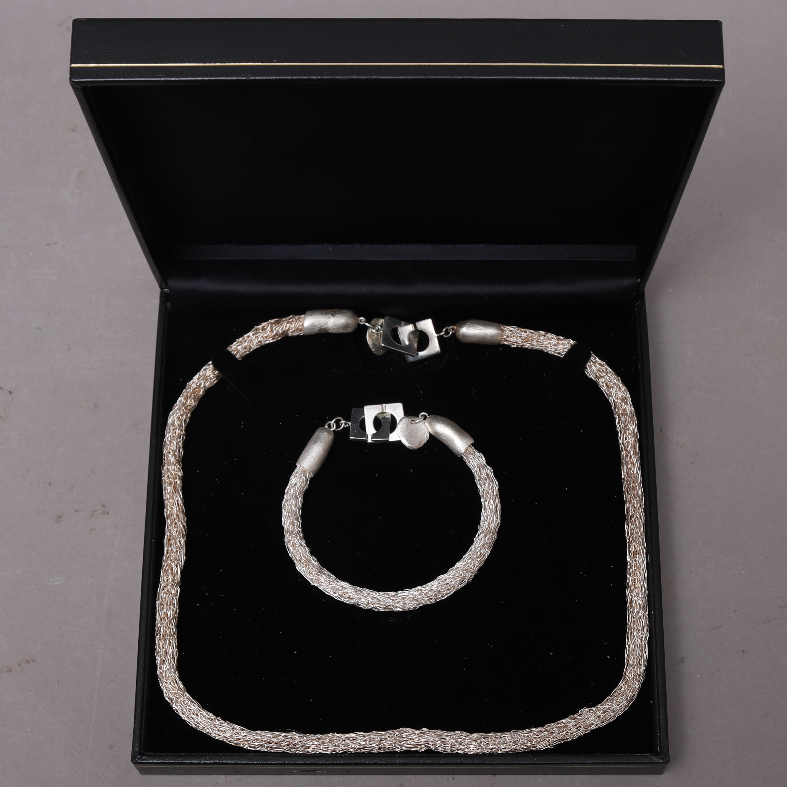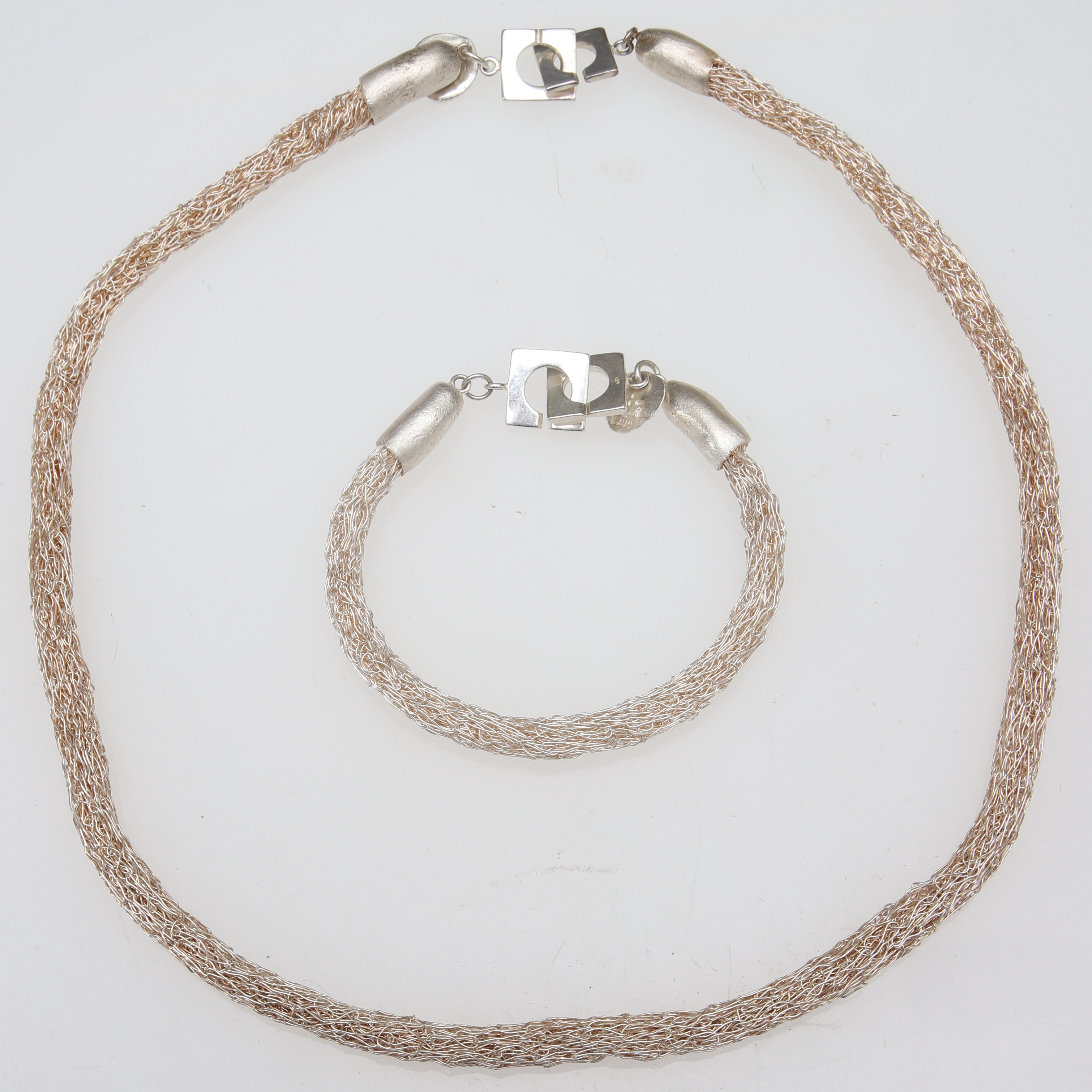 2094606. COLLIER & ARMBAND, tvinnade silvertrådar, samtida.