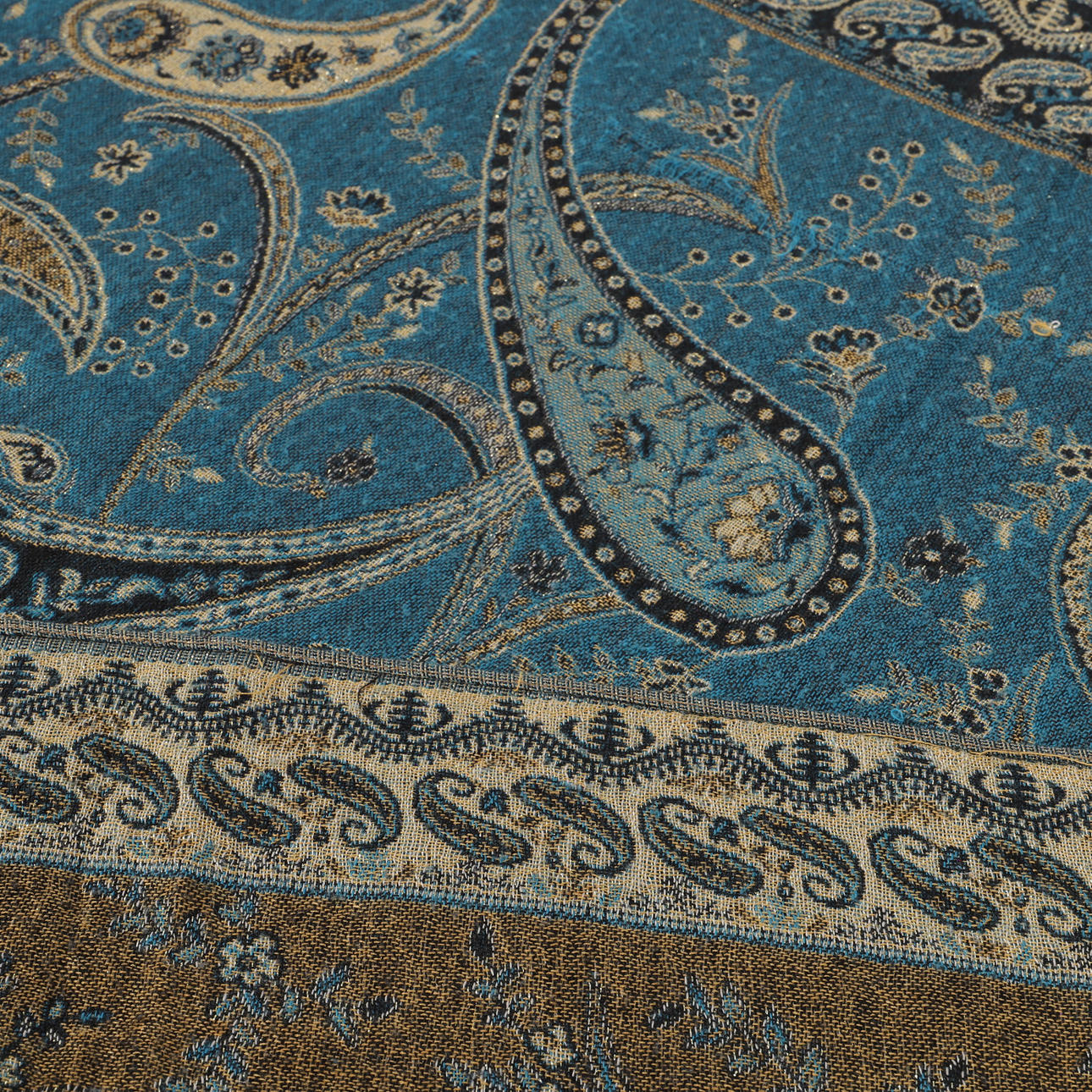 Beige sjal med blå toner och glittertråd, 180 x 70 cm