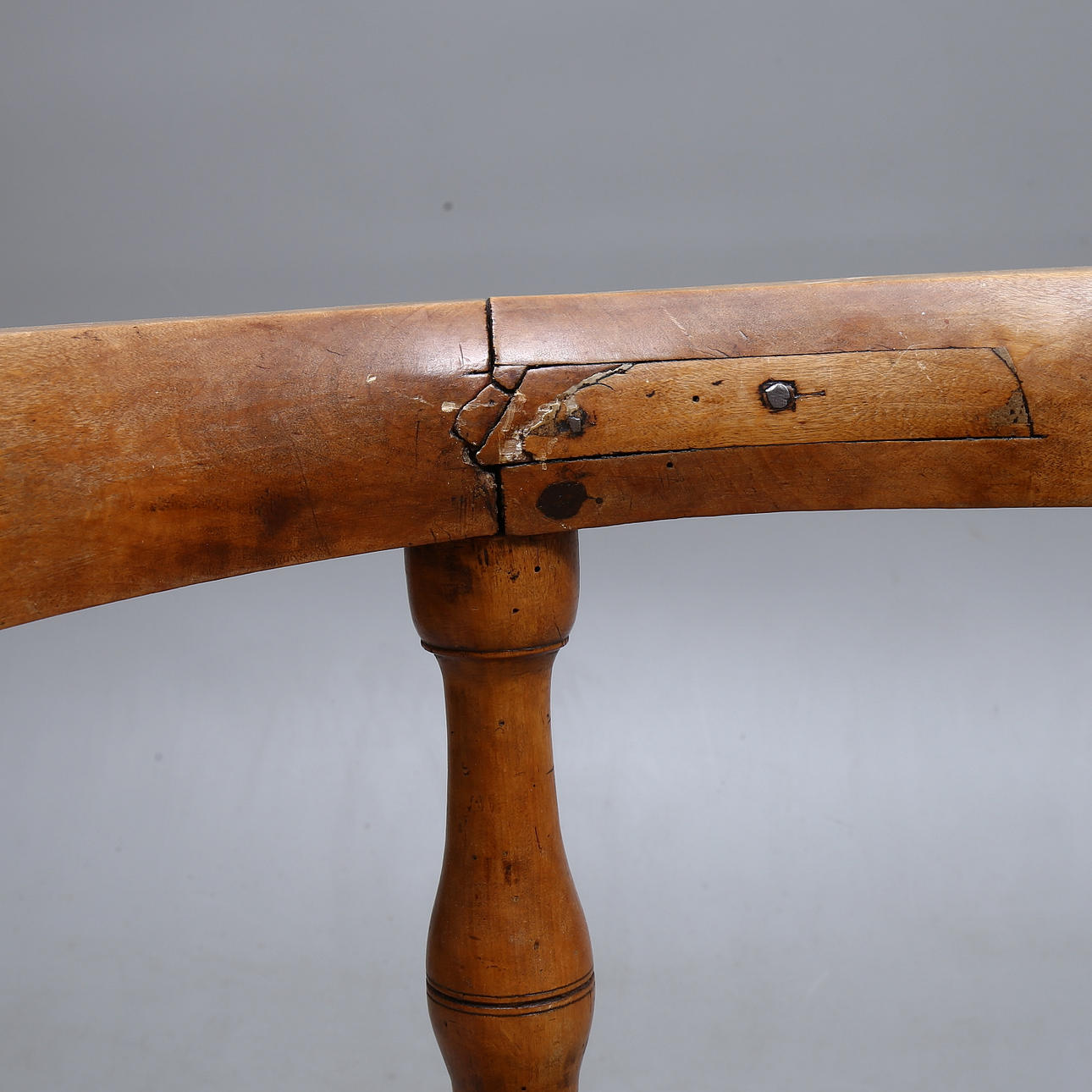 Slitage, renoverad, kompletterad. Maskstunget. Ostabil. Senare klädsel med fläckar..