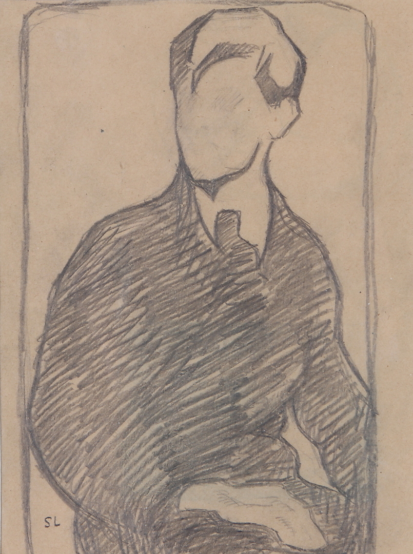 210027. SIXTEN LUNDBOHM. Mansstudie, blyerts, monogramsignerad.