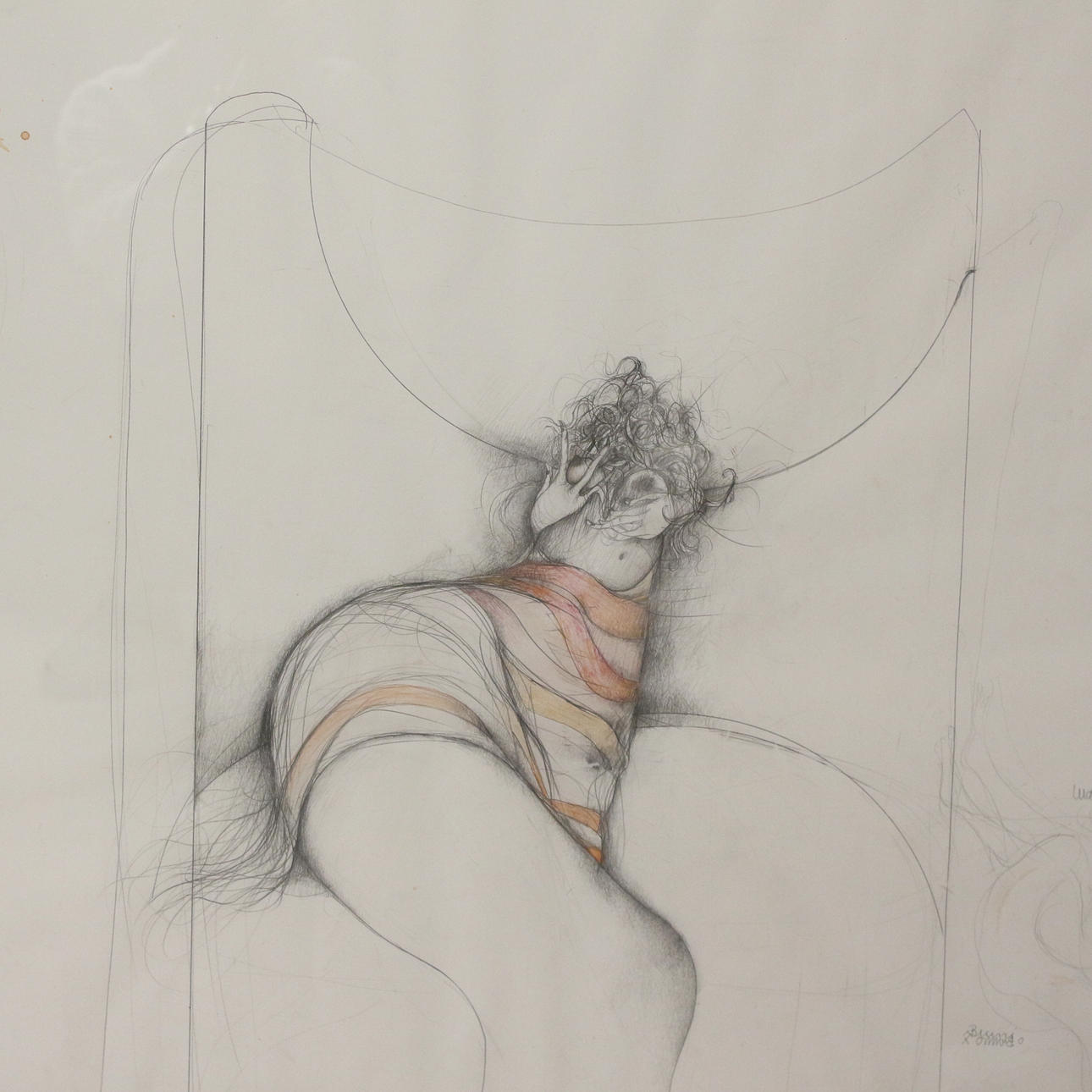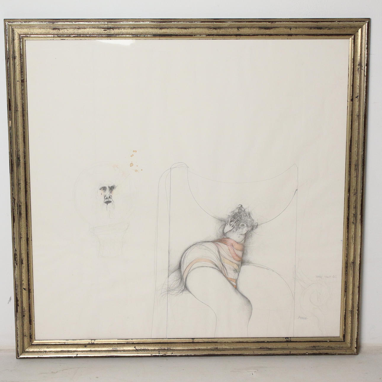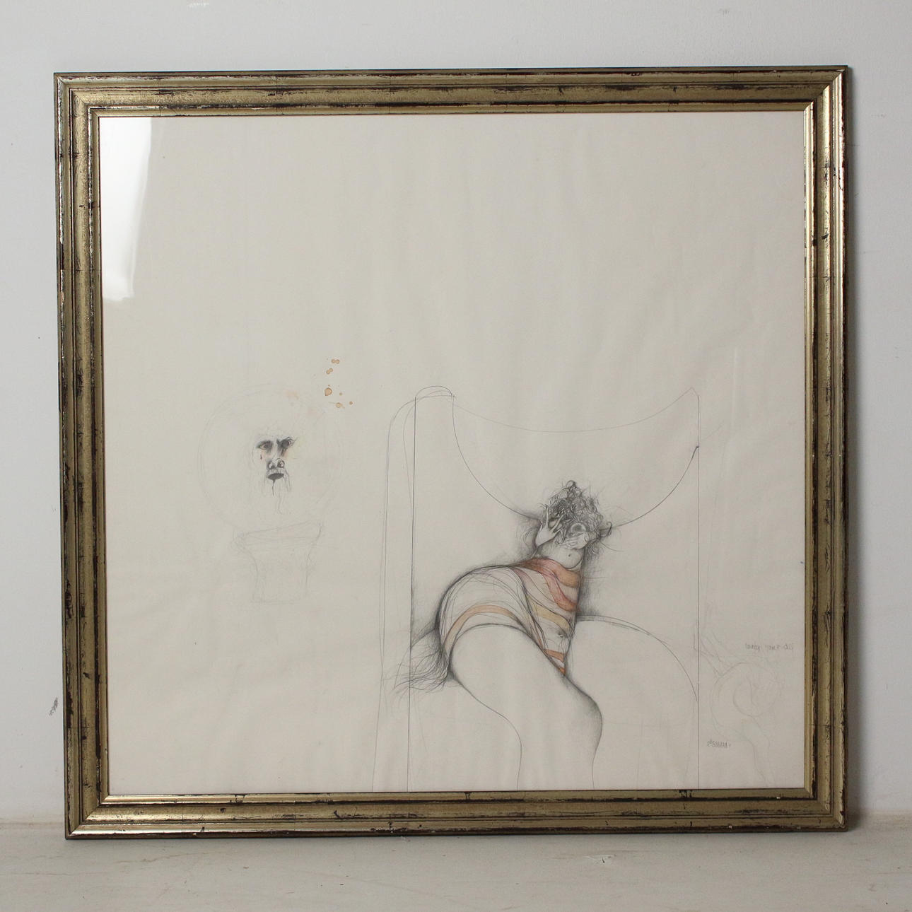 Bruno Bruni (* 1935), 'Untitled, 'teckning, akvarell, färgblyerts, oläsligt titlad och signerad längst ner till höger, Mått: 102 x 104 cm.
