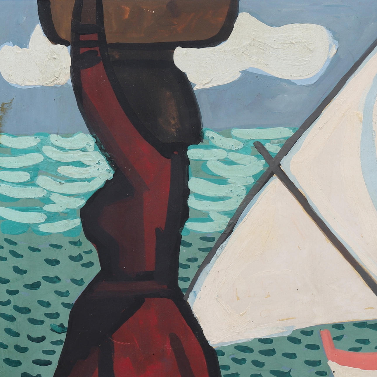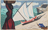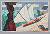 Gouache på papper uppfodrad på pannå, c:a 33 x 52 cm.
