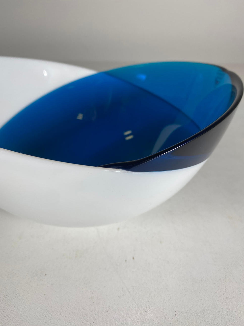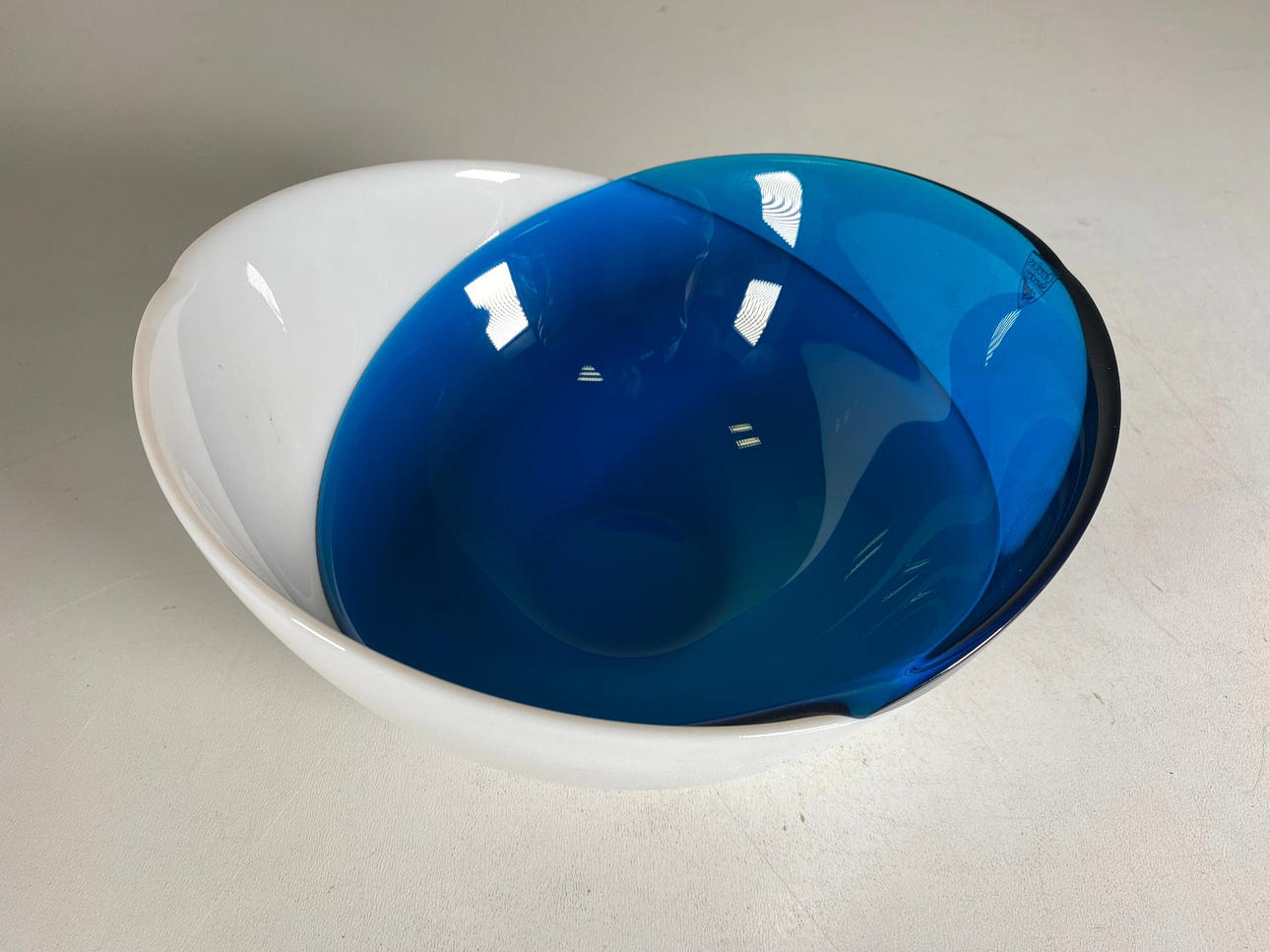 ORREFORS Sweden, skål, frostat glas, blå. Mått: h. 10 cm. D. 20cm.