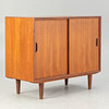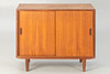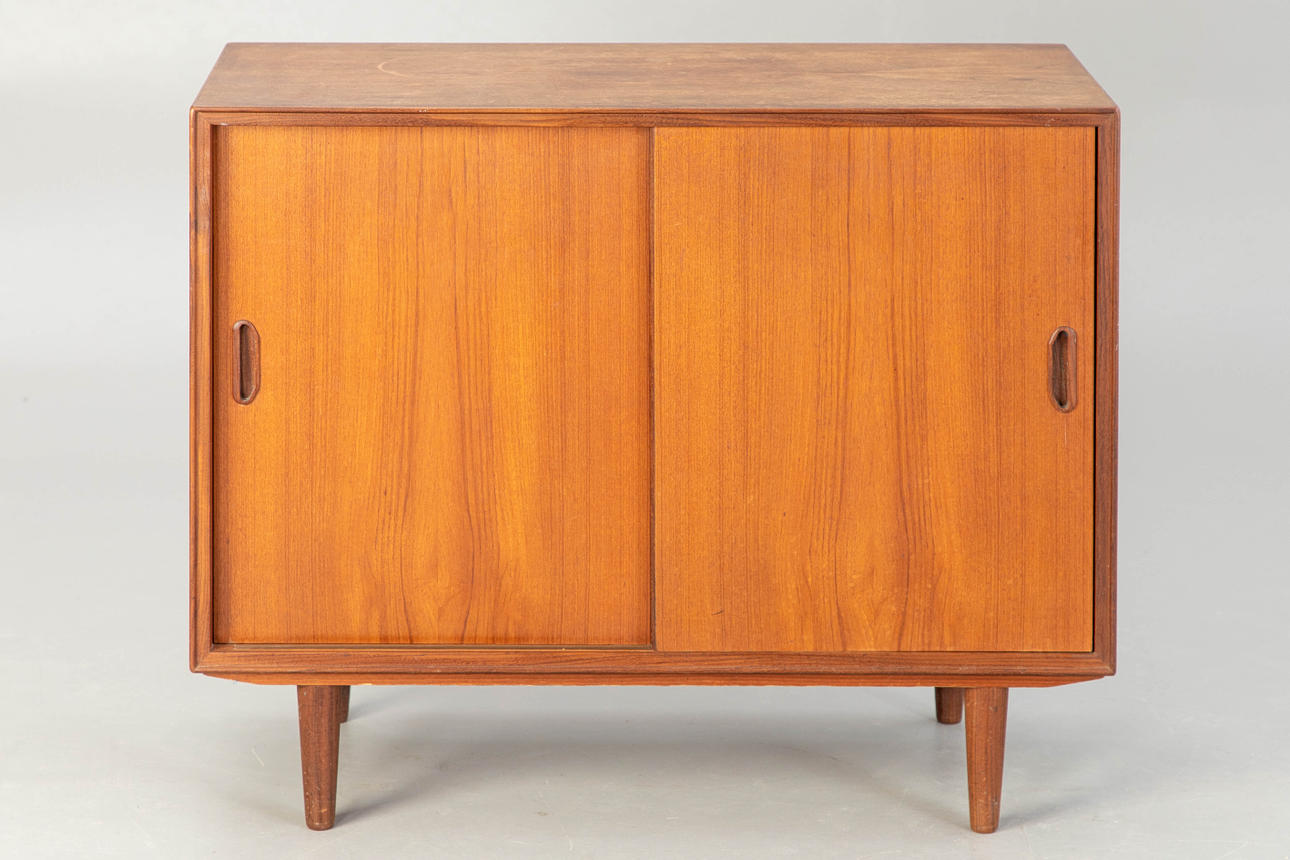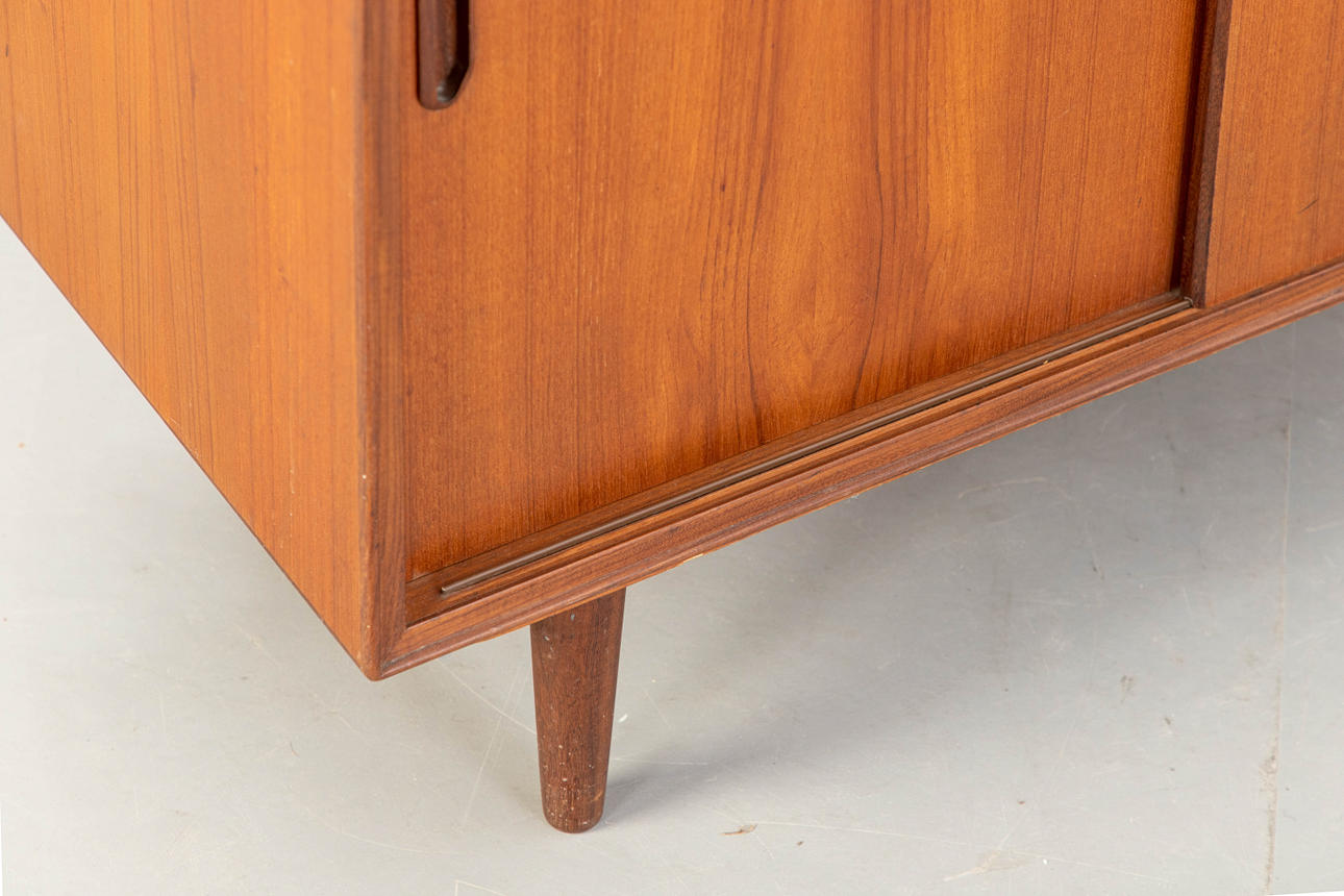 Teakfanér skänk med 2 skjutdörrar. Dansk design, 1900-tal cca H 73 cm x B 90 cm x D 40 cm.