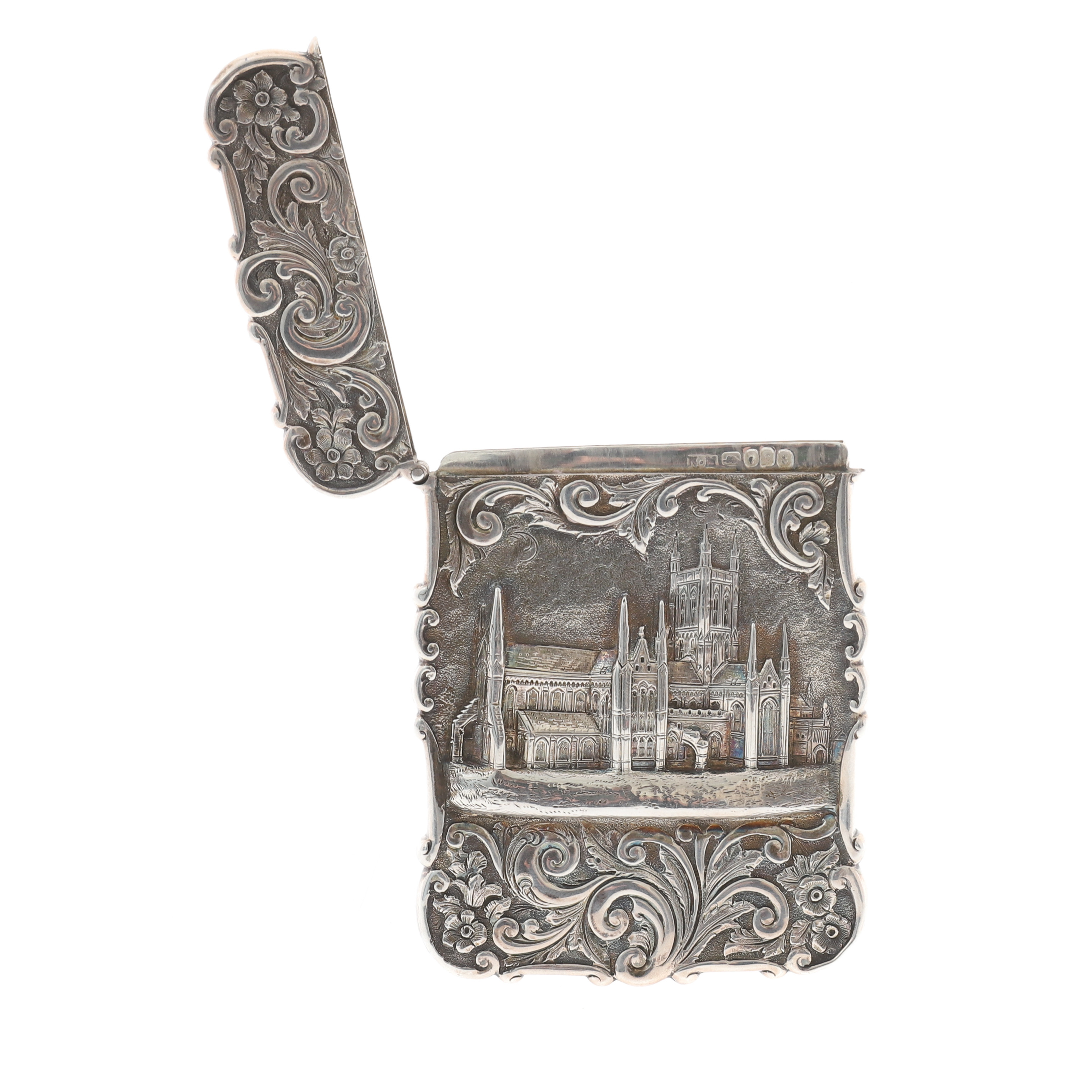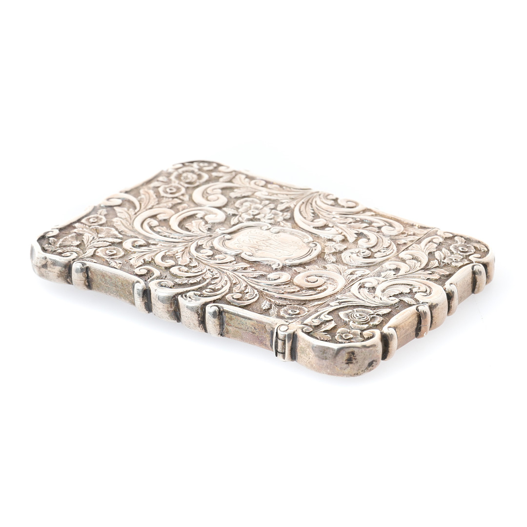 2108042. ETT VIKTORIANSKT VISITKORTSFODRAL I SILVER.