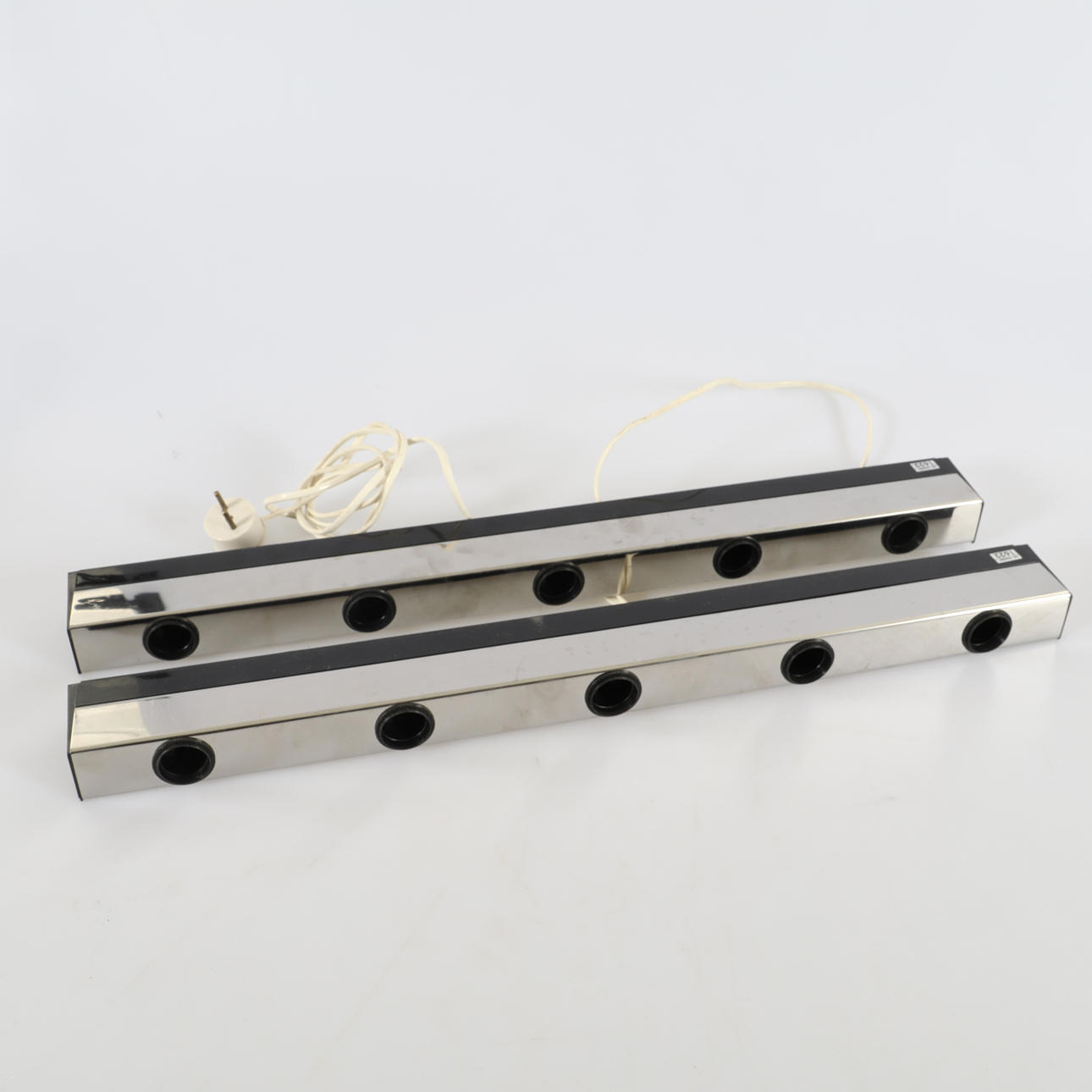 Vägglampor, förkromad. Längd ca 60 cm.