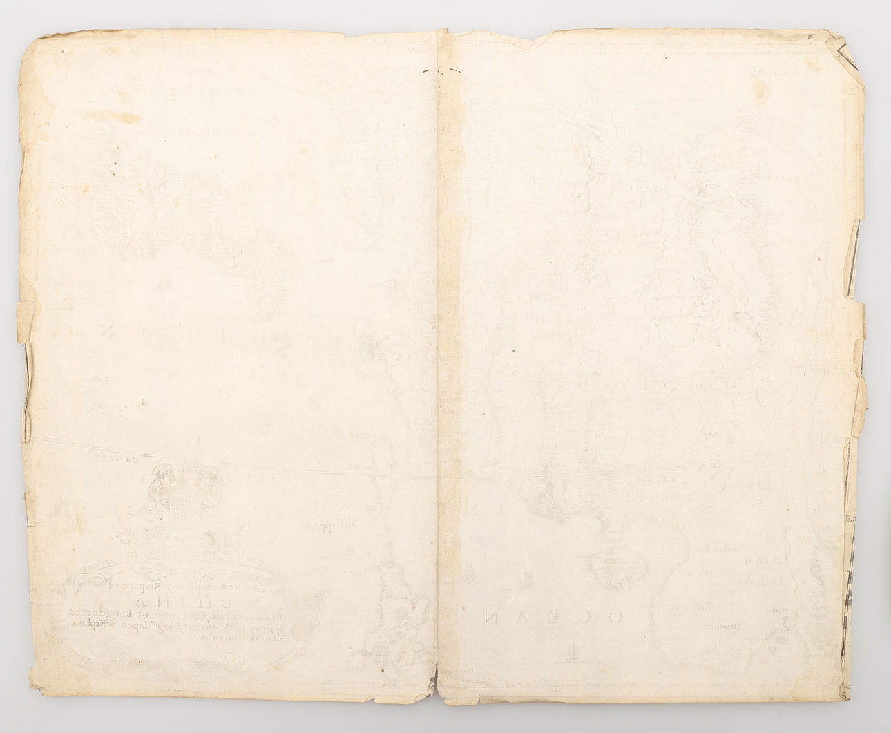 kanter scuffed och veckade med små revor och brunning, mittveck, åldersfärgning.