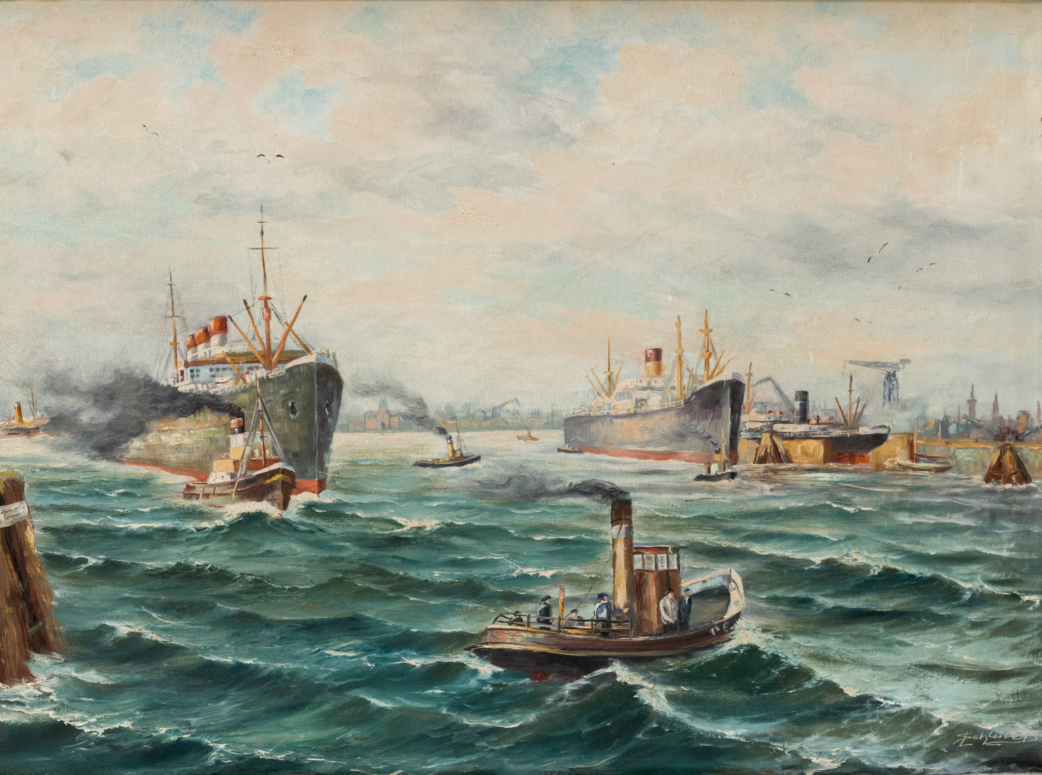 2118960. LOTHAR SCHLÜTER (GEB. 1928). Ångbåtar i hamnen.