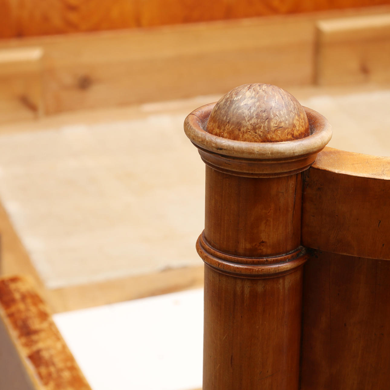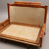 Repor, märken. Skador på dekor. Slitage, fläckar på juteväv. Förstärkt under med metalljärn. Förlängd med skiva i botten.