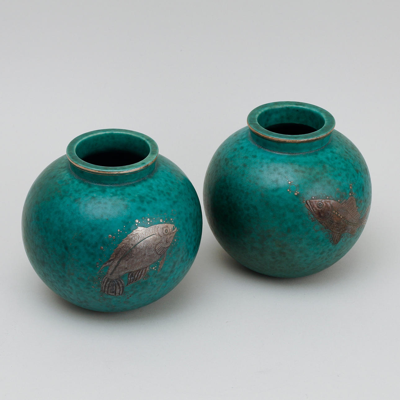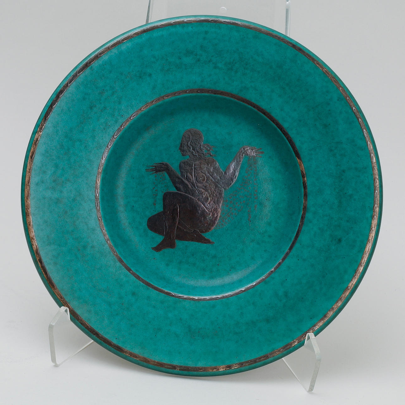 Gustavsberg,. Vaser, höjd: 12,5 cm. Fat; diameter 26,5 cm.