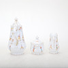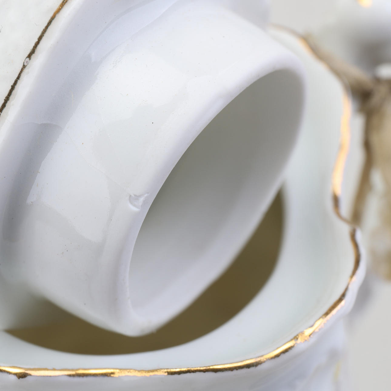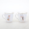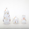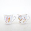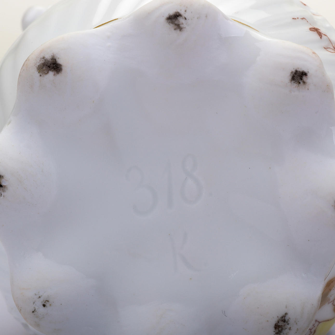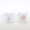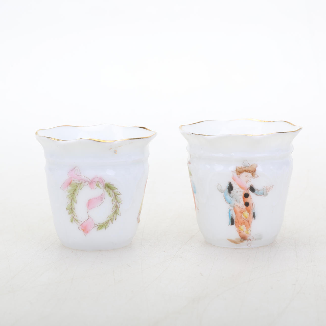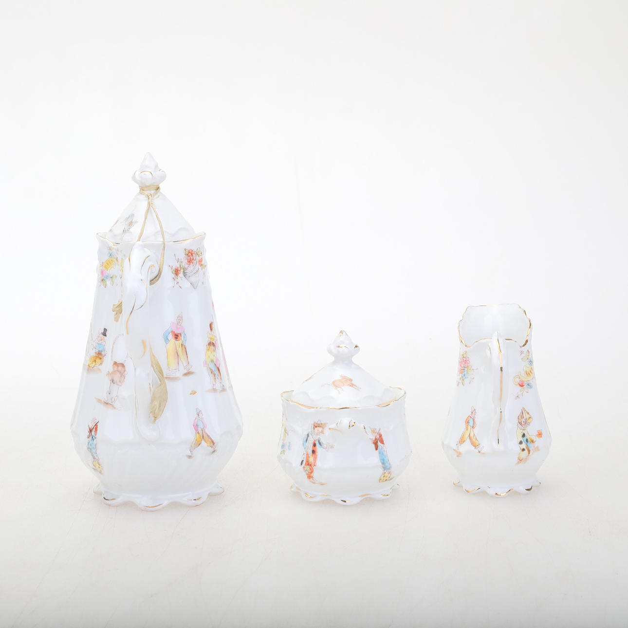 1 st kanna höjd 5 st fat ca ø 10 cm 5 st koppar ca ø 5 cm, 5 cm hög 1 st gräddkanna och 1 st sockerskål.