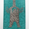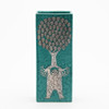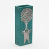 Grönglaserat stengods med silverdekor, höjd ca 18 cm.