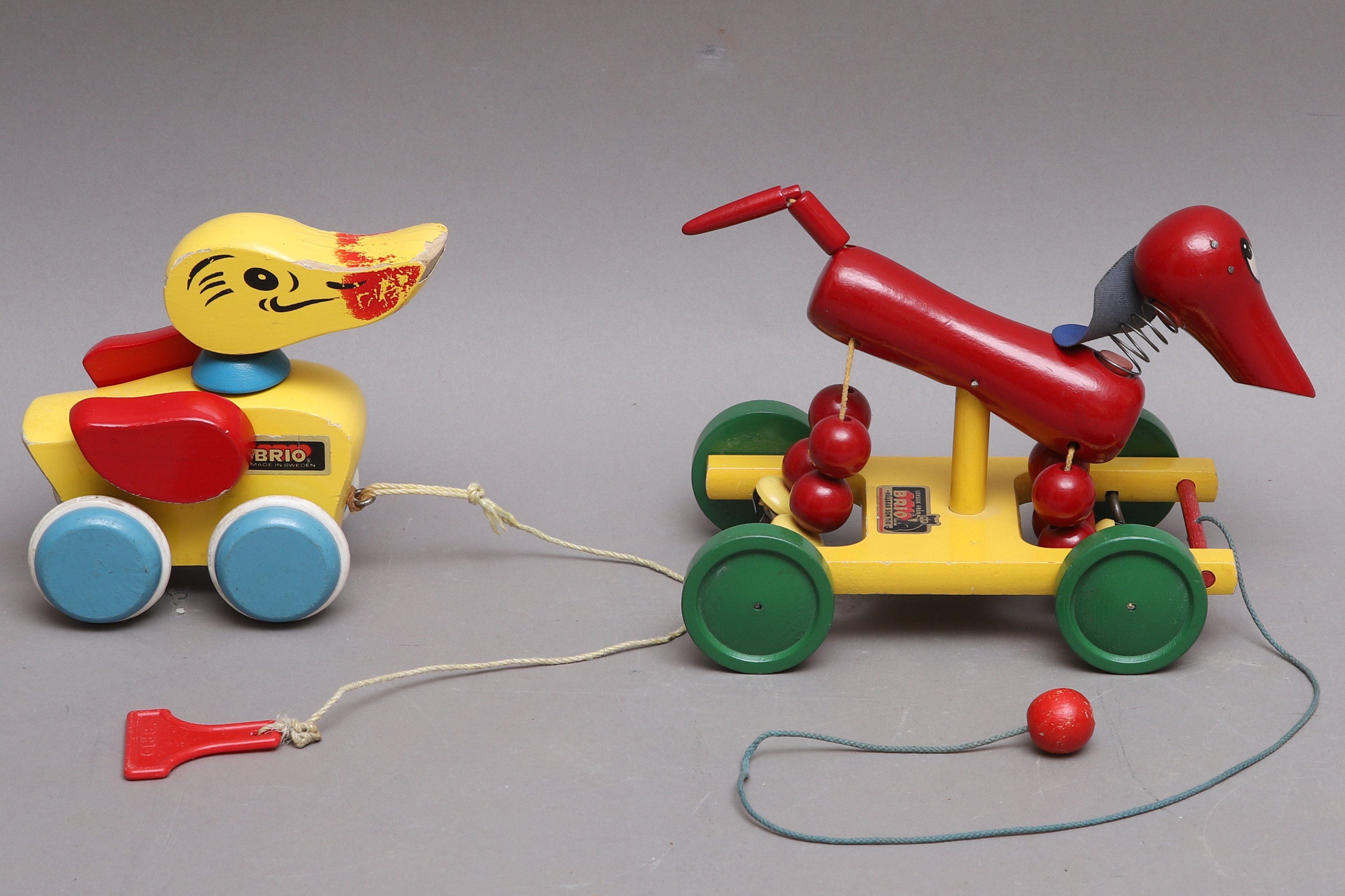 2128363. DRAGLEKSAKER, 2 st, trä, BRIO.