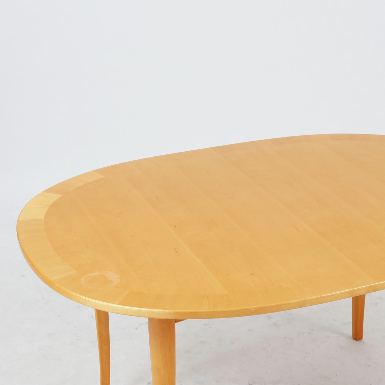 Ljust lövträ. Stämplat. Oval form 120 x 86 cm, höjd 61 cm.