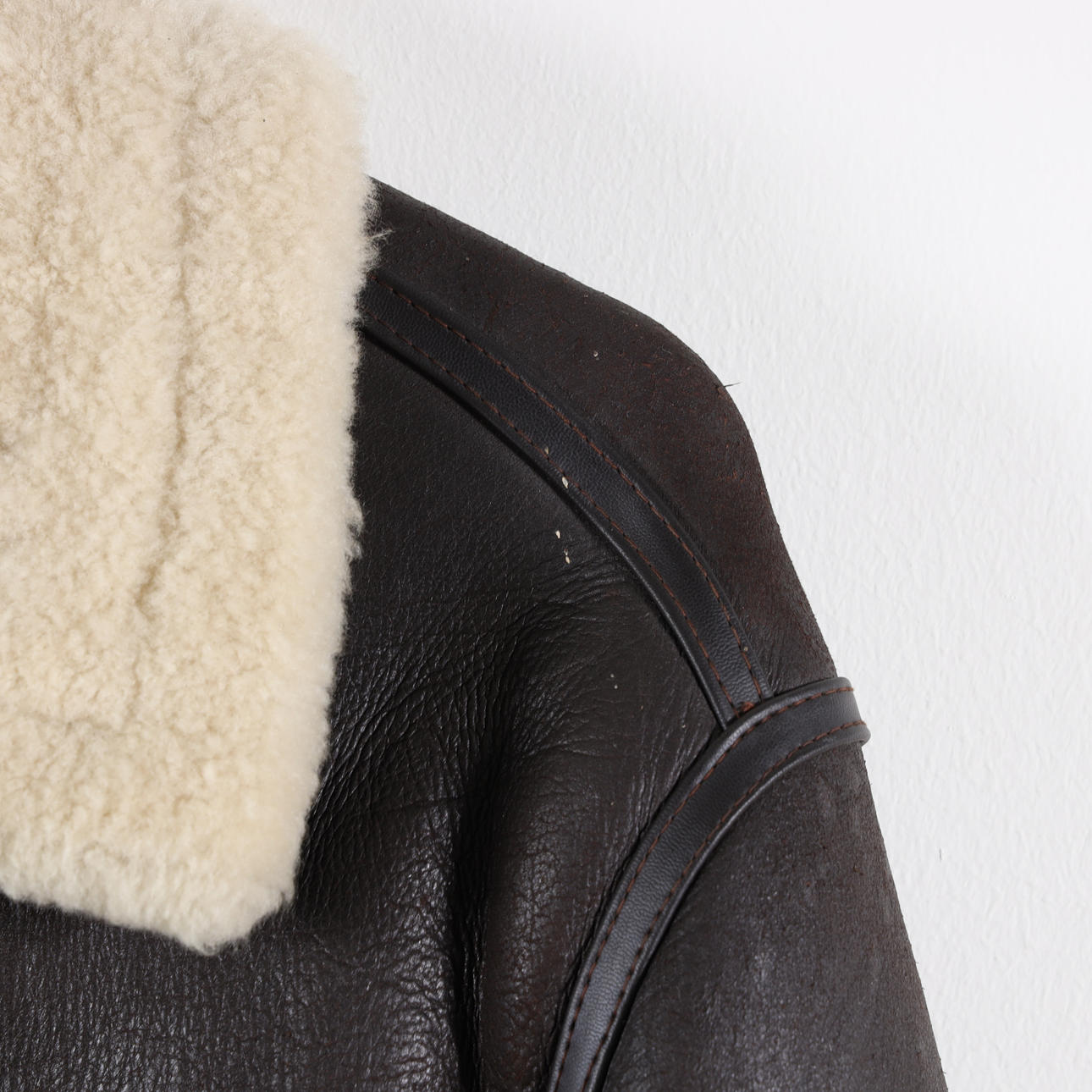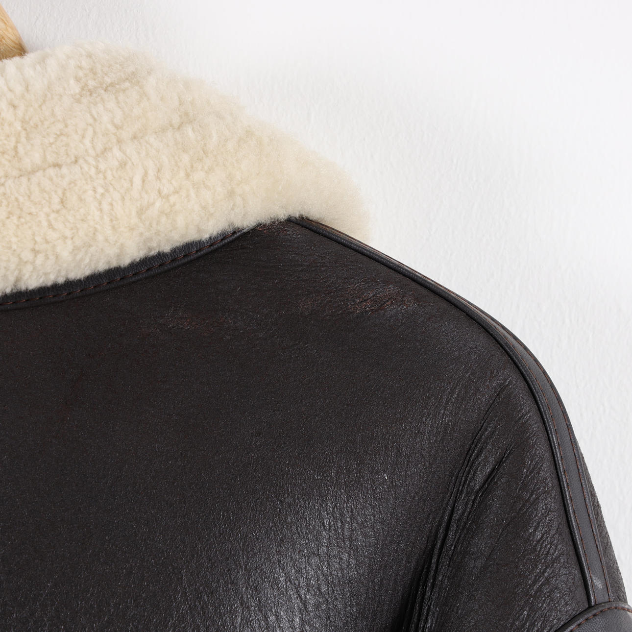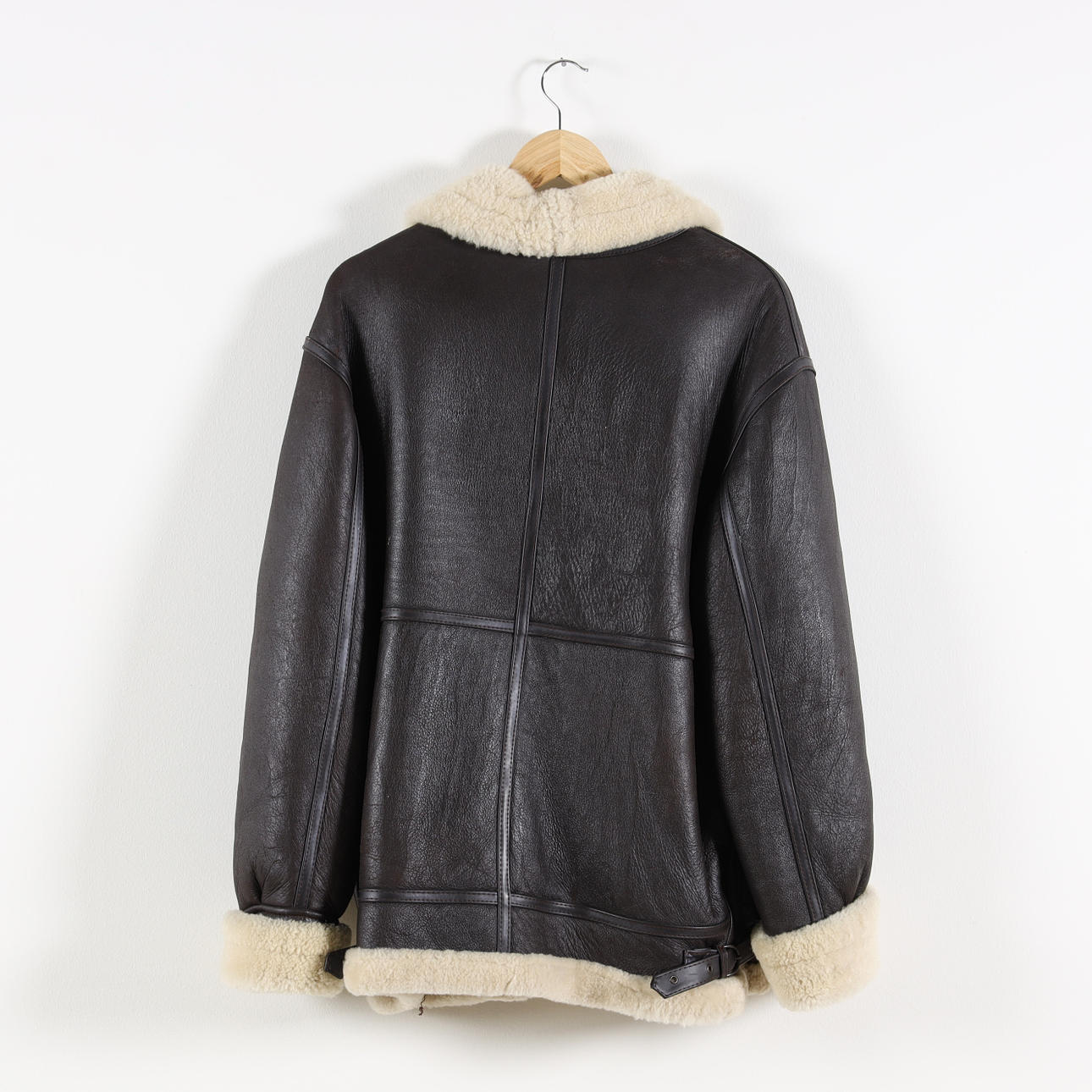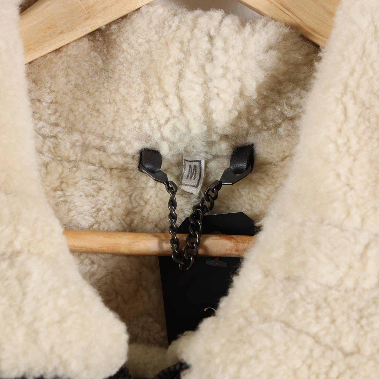 Shearlingjacka i fårskinn med dragkedja samt krage med två spännen. Bystvidd ca 110 cm. Rygglängd ca 73 cm. Ärmlängd ca 65 cm.