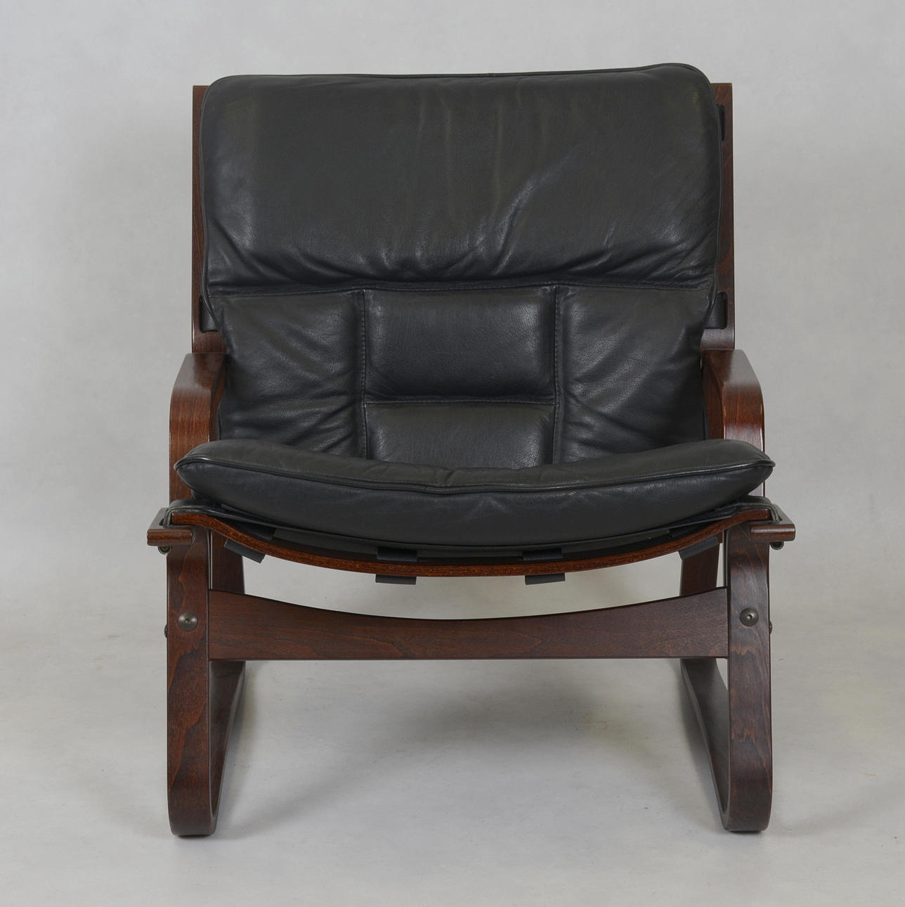 Skinnfåtölj, böjträ.