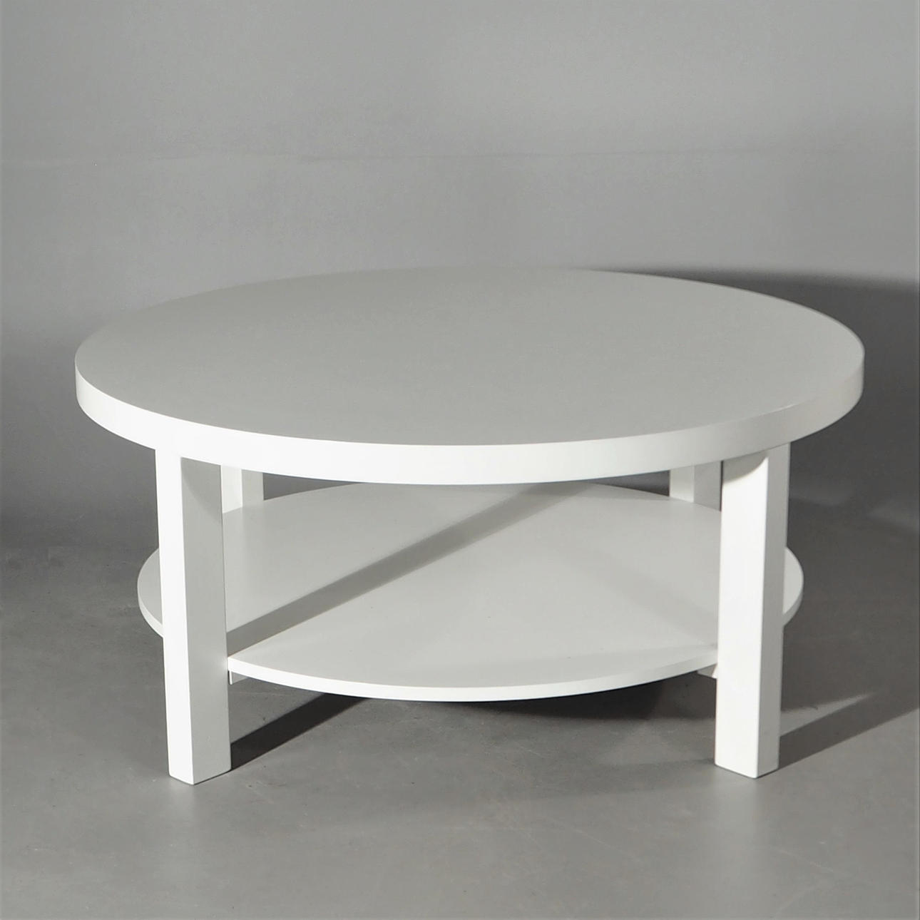 Vitlackerat trä. Diameter 100 cm, höjd 45 cm.