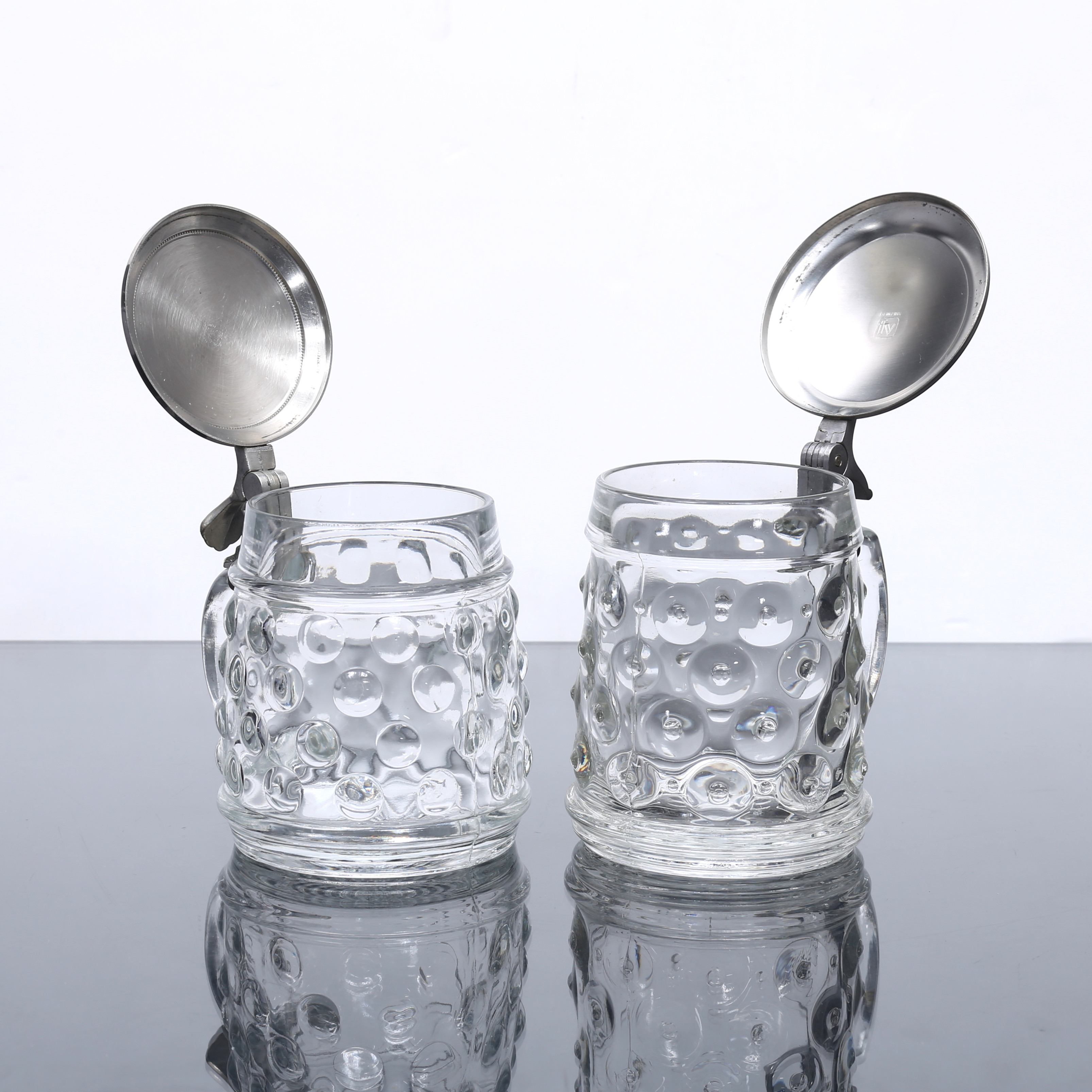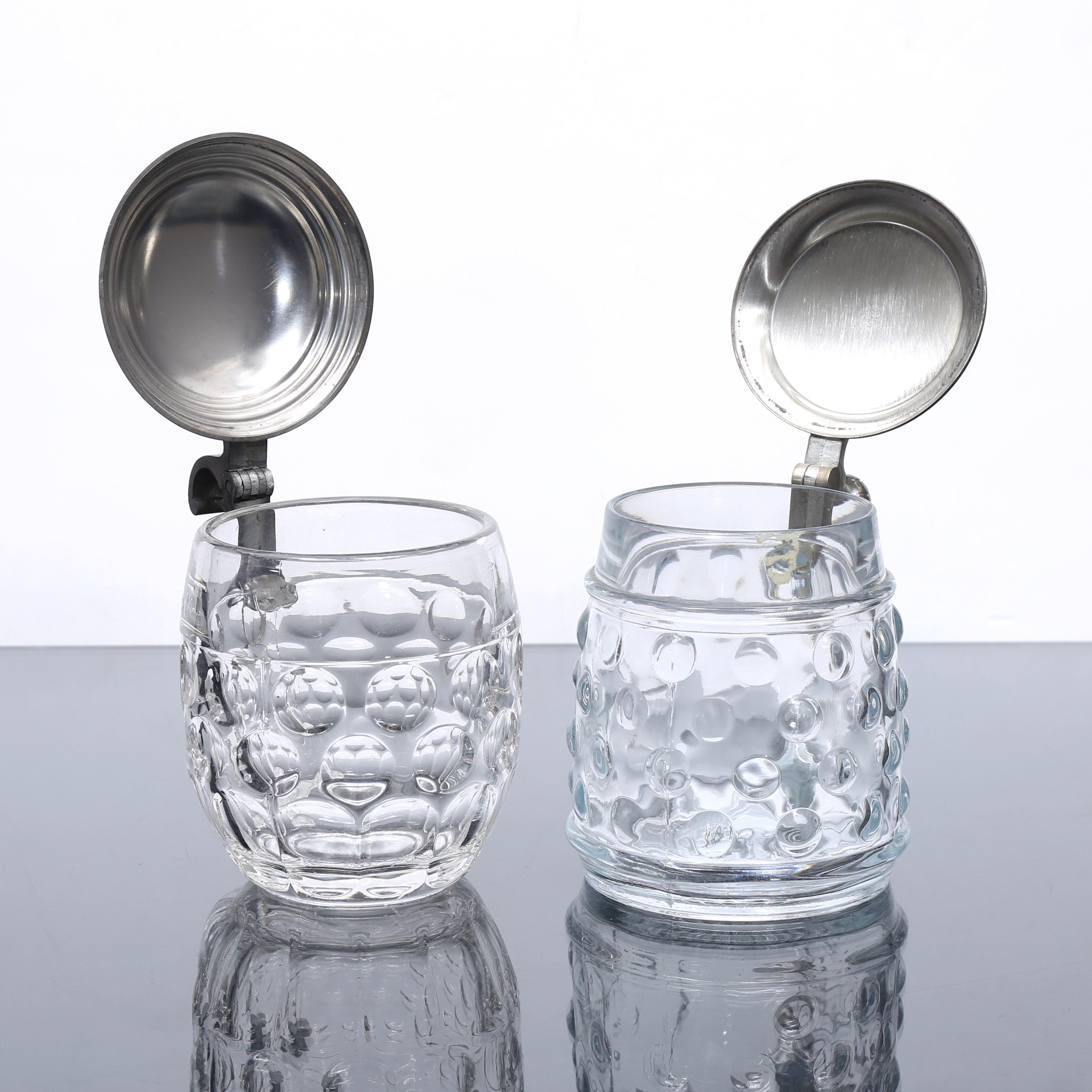 2138784. ÖLSTOP, 4 st, glas/metall, 1900-tal.