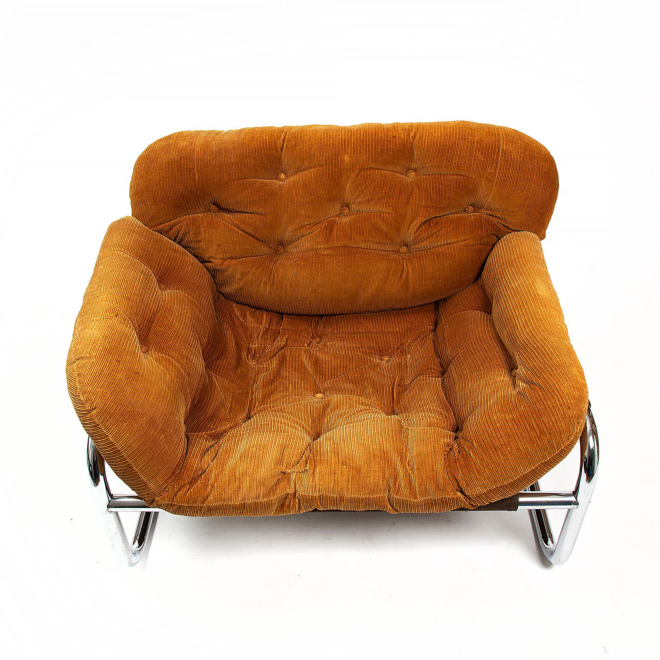 Stålrörsstomme. Manchesterklädd dyna. Sitthöjd ca 34 cm.