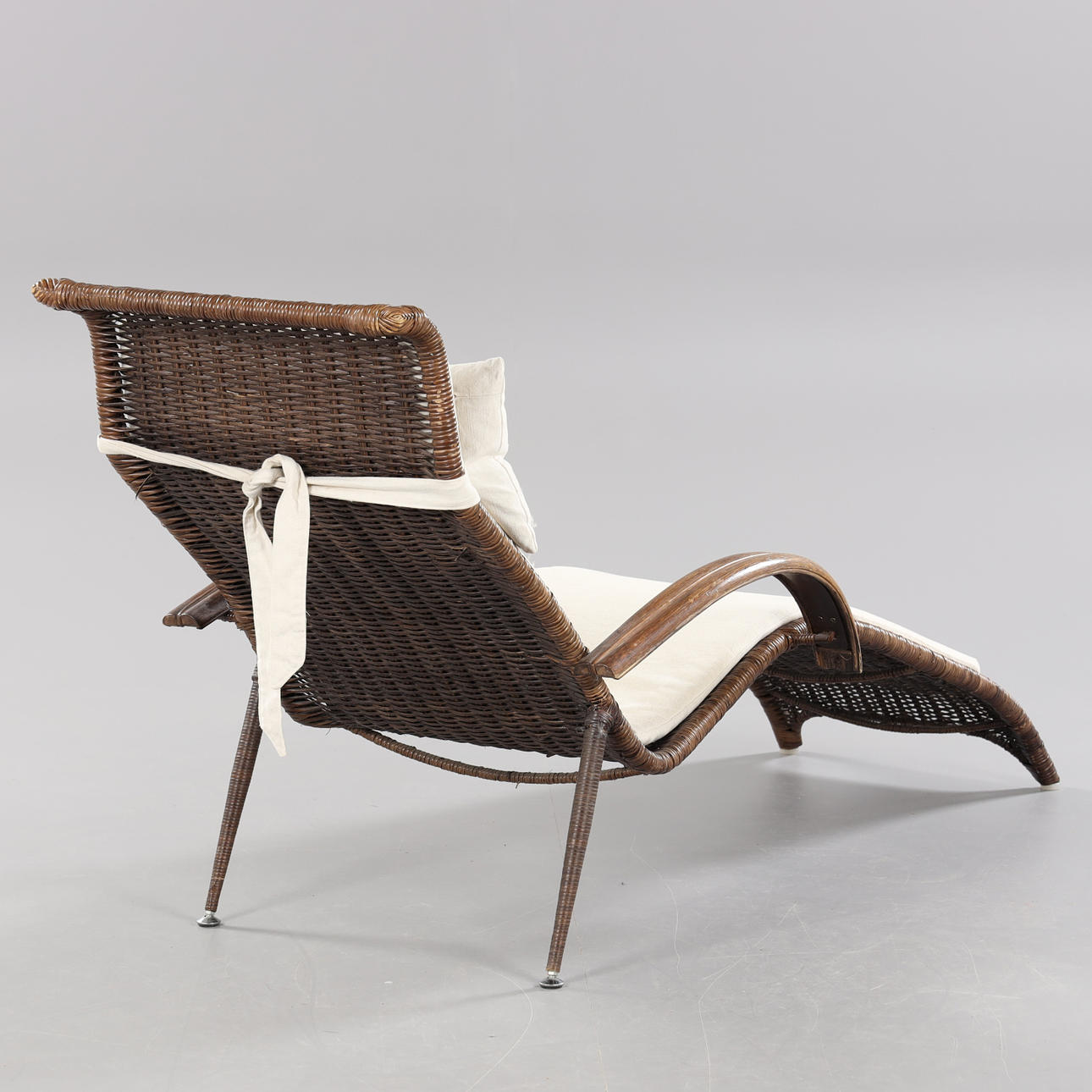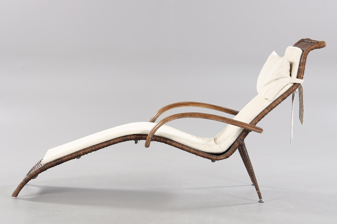 samt stål. Dyna samt nackkudde med bomullsklädsel. 2000-tal. Höjd ca 72, längd 160 cm.