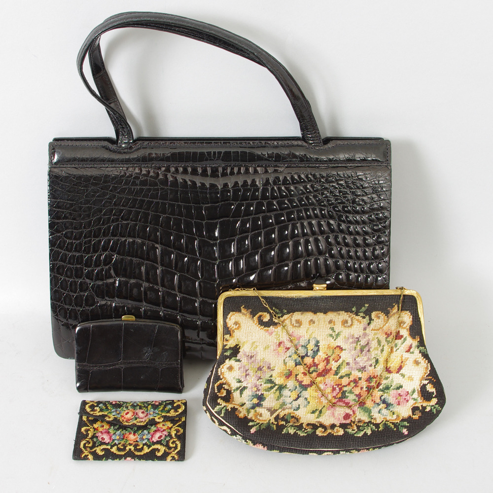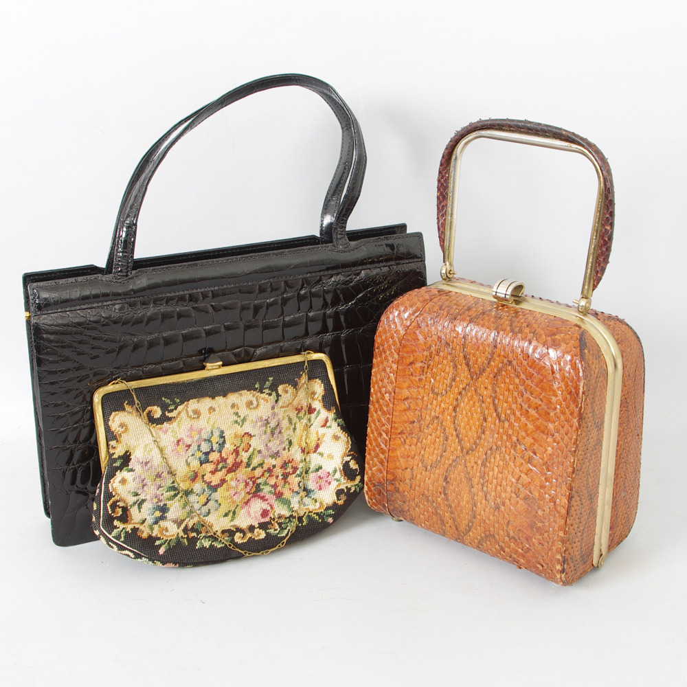 214324. HANDVÄSKOR, 3 stycken, bl. a. reptil.