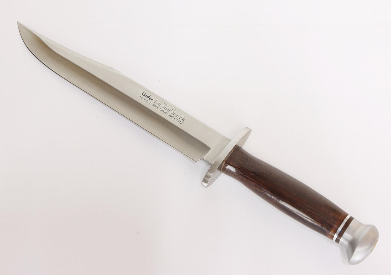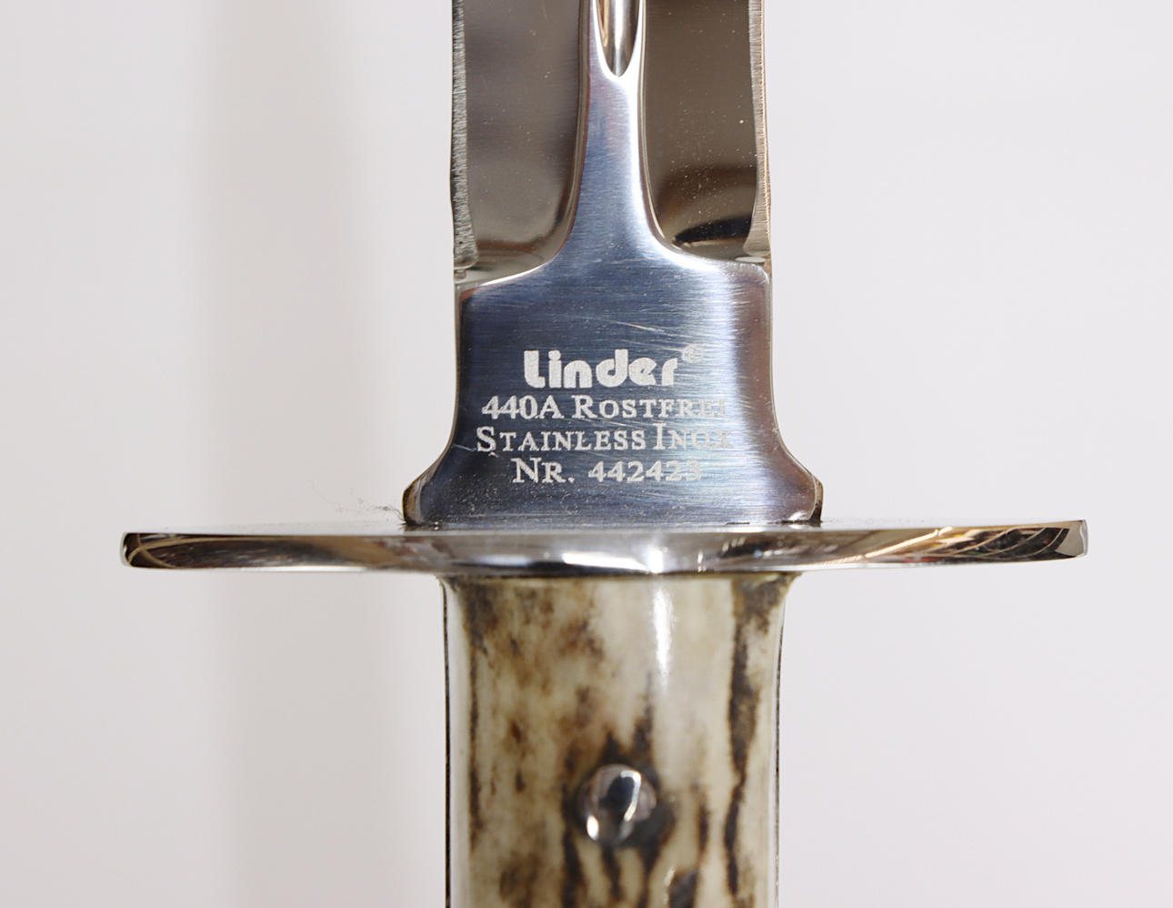 Stickkniv; totallängd ca 37 cm, läderfodral.