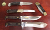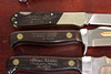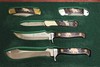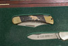Set om 5 knivar vara 3 är fällknivar, numrerad upplaga 41/250, träschatull medföljer.