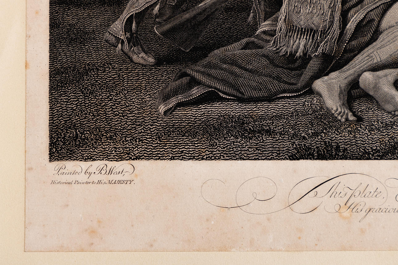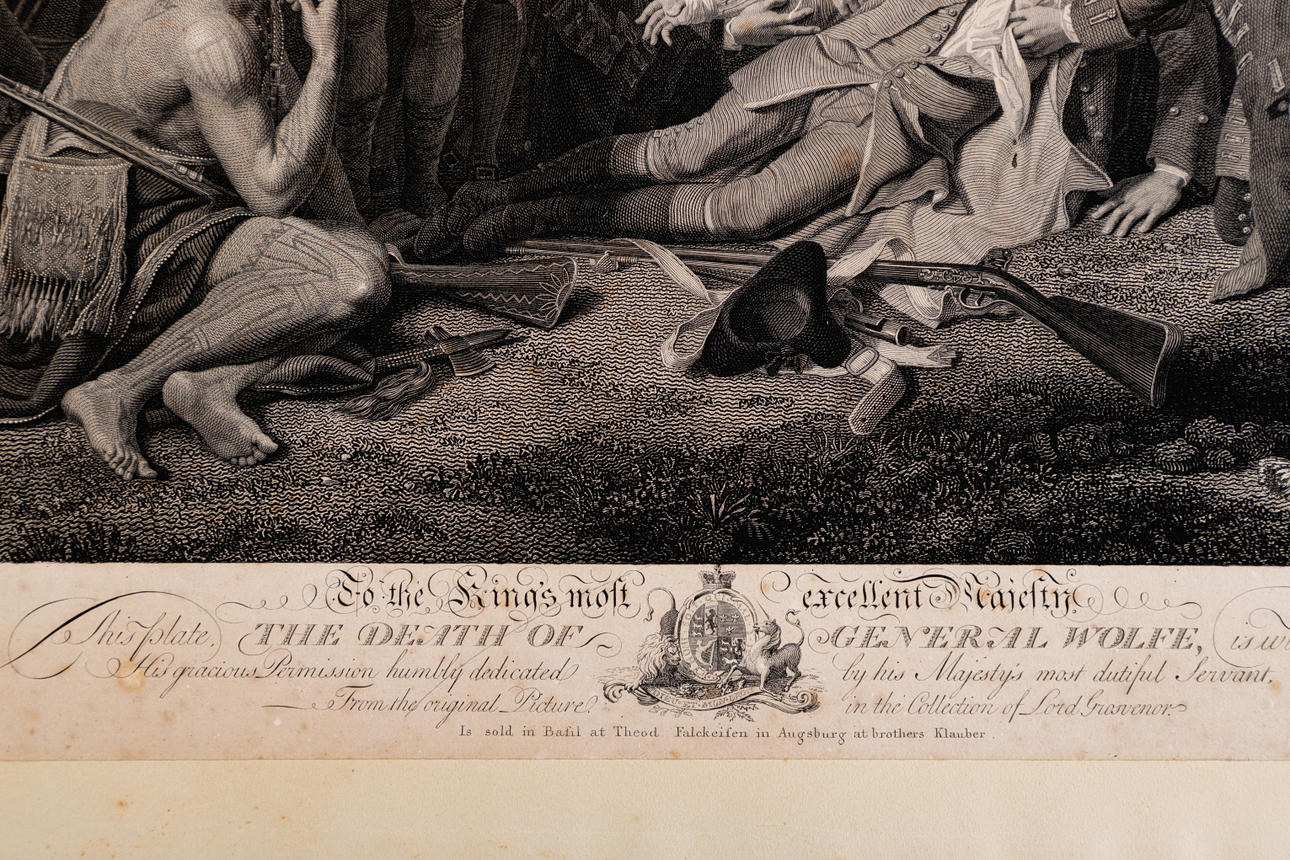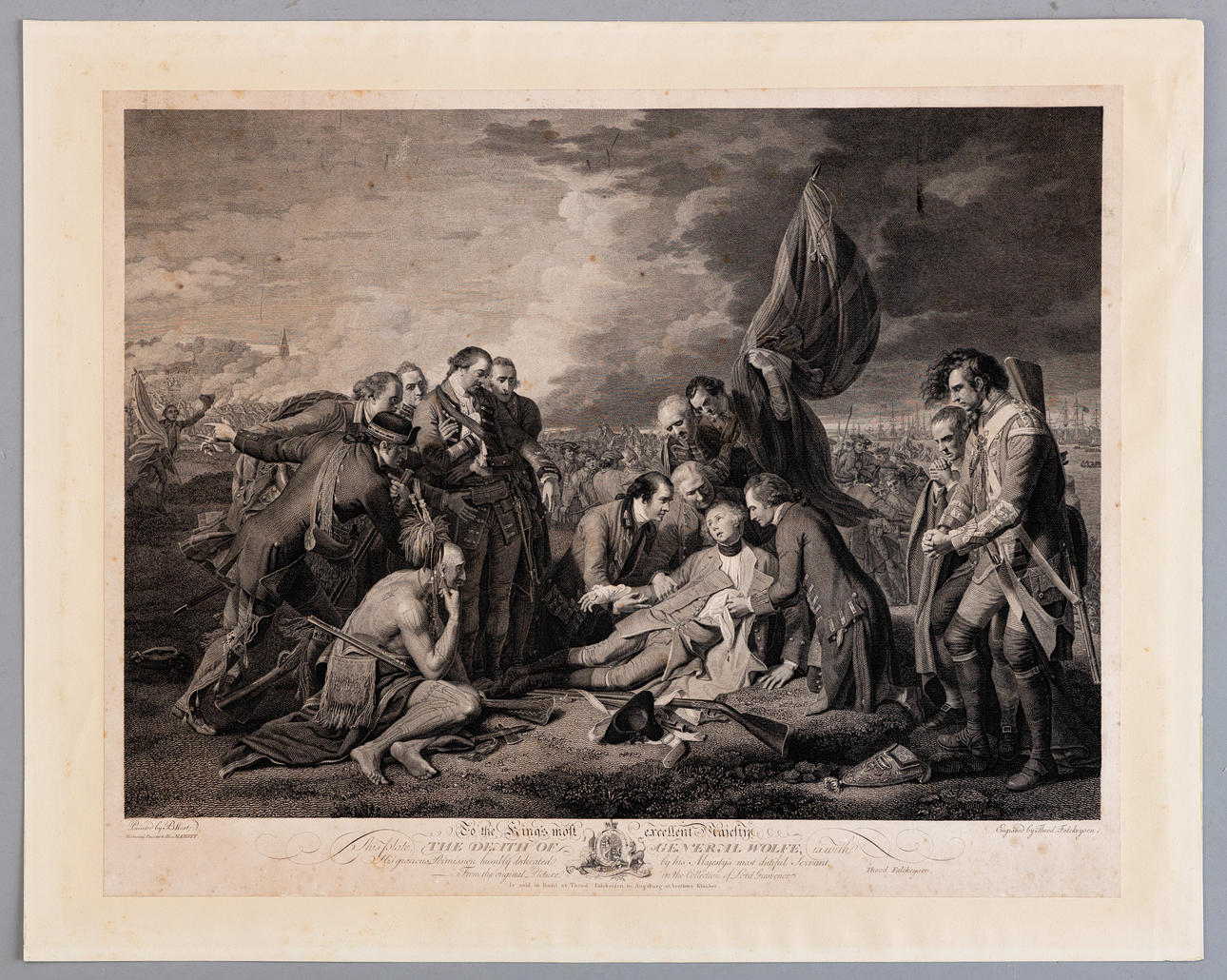 Etsning baserad på Benjamin Wests målning ”General Wolfes död” 1770, som firar slaget vid Quebec 1759, där general James Wolfe dog i segerns ögonblick.