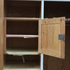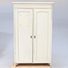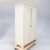 Bemålat. Två dörrar med bakomvarande förvaring och hyllplan. En mindre dörr med lås invändigt. Längd ca 118 cm. Bredd ca 54 cm. Höjd ca 191 cm.