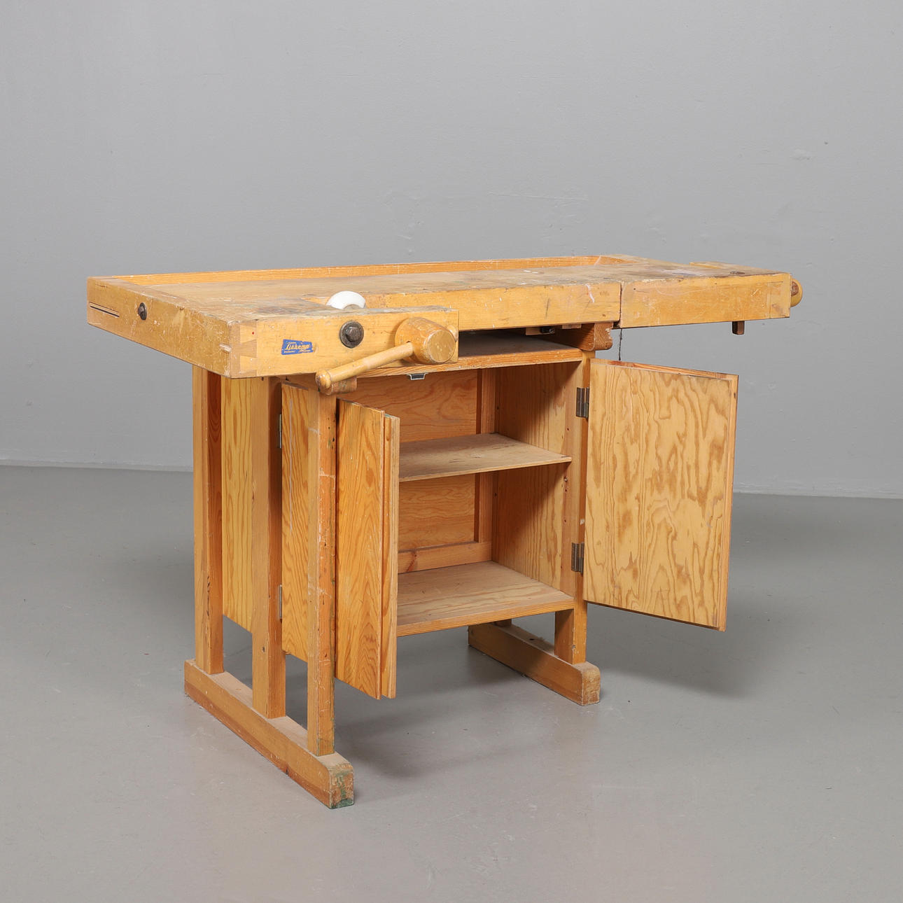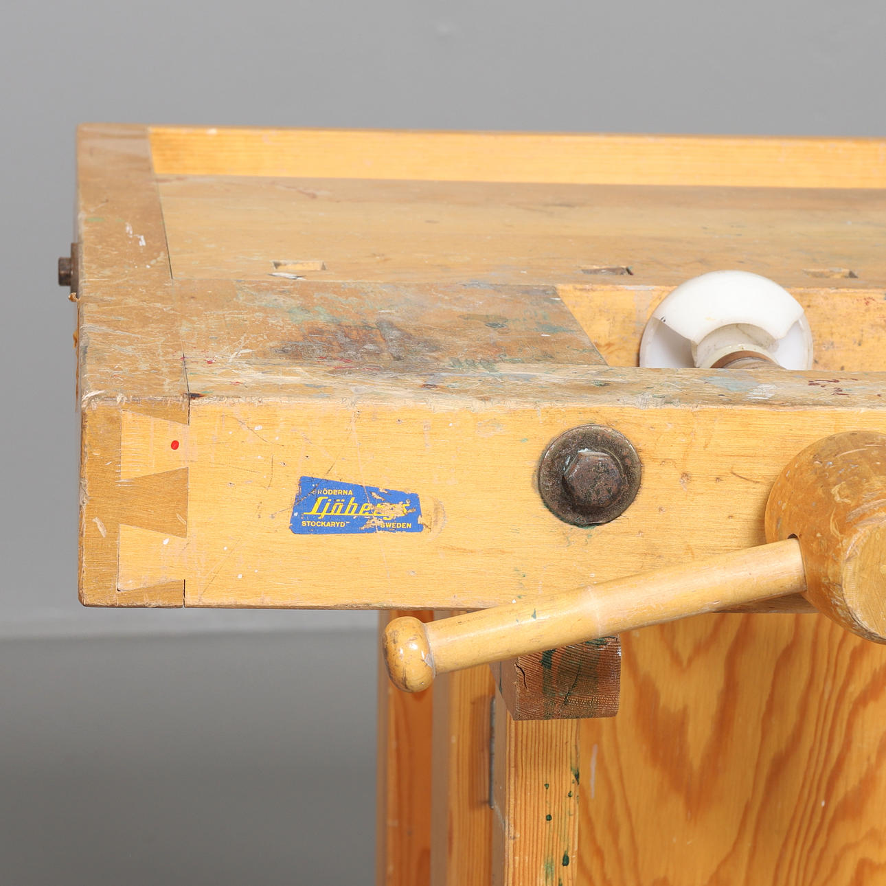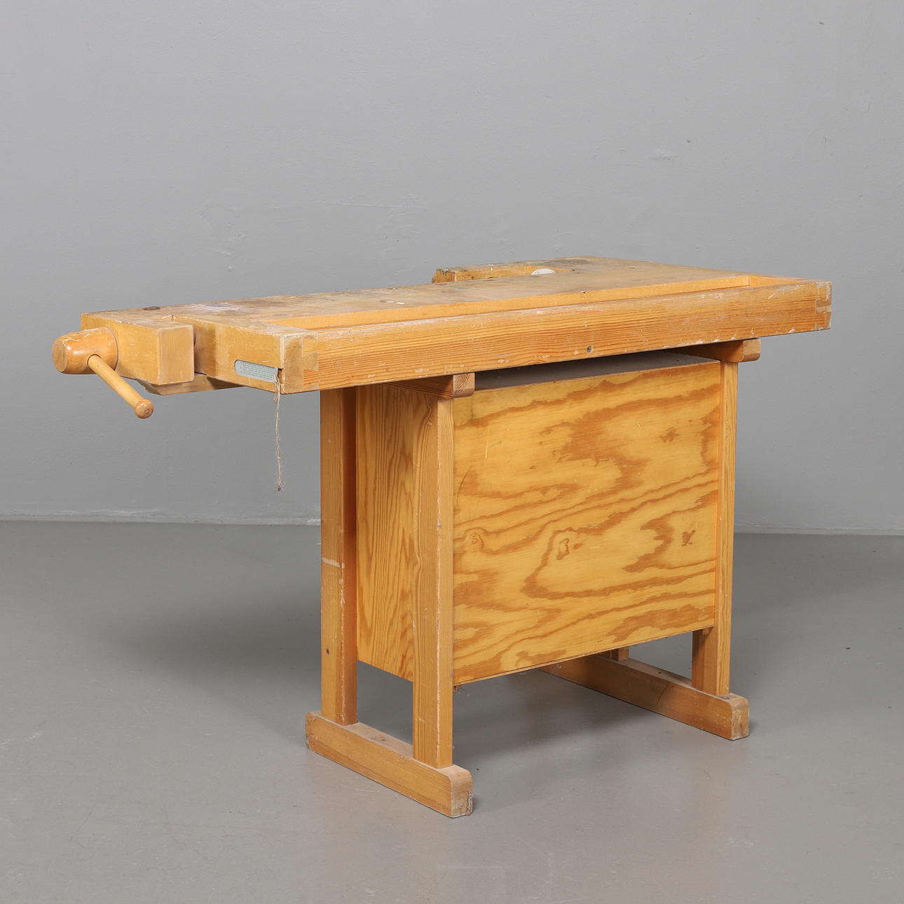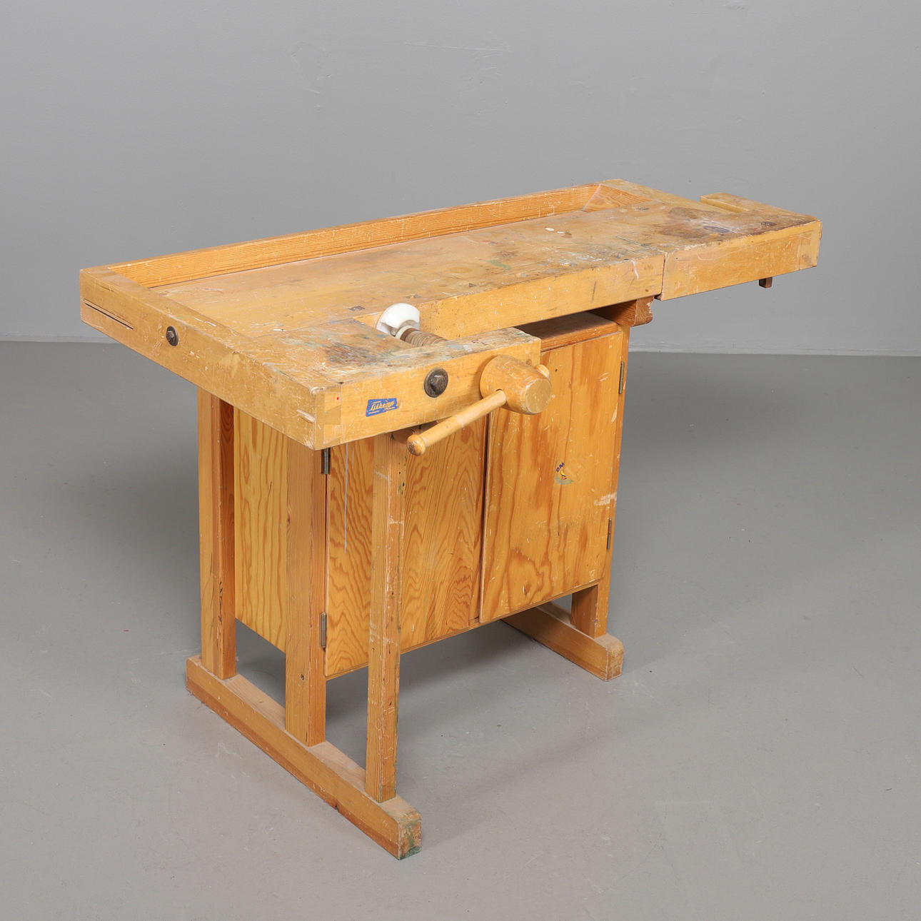 Snickarbänk, i lackat trä. Bröderna Sjöbergs, Stockaryd. Etikettmärkt. Mått: 139 x 75 cm, höjd 82 cm.