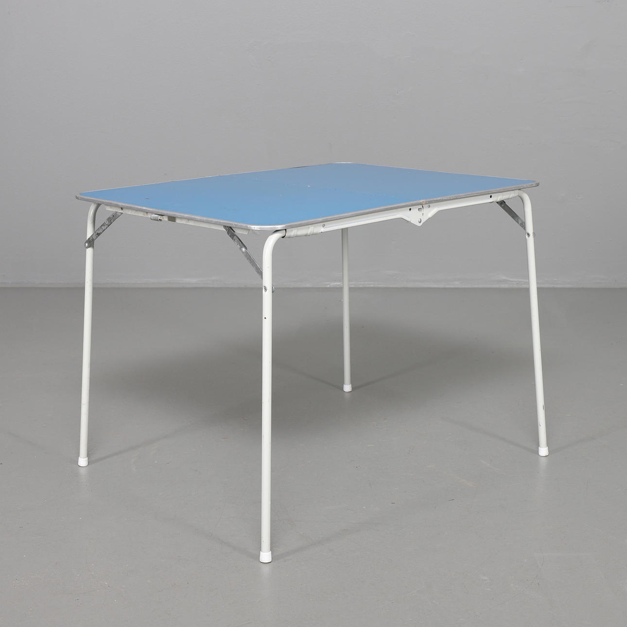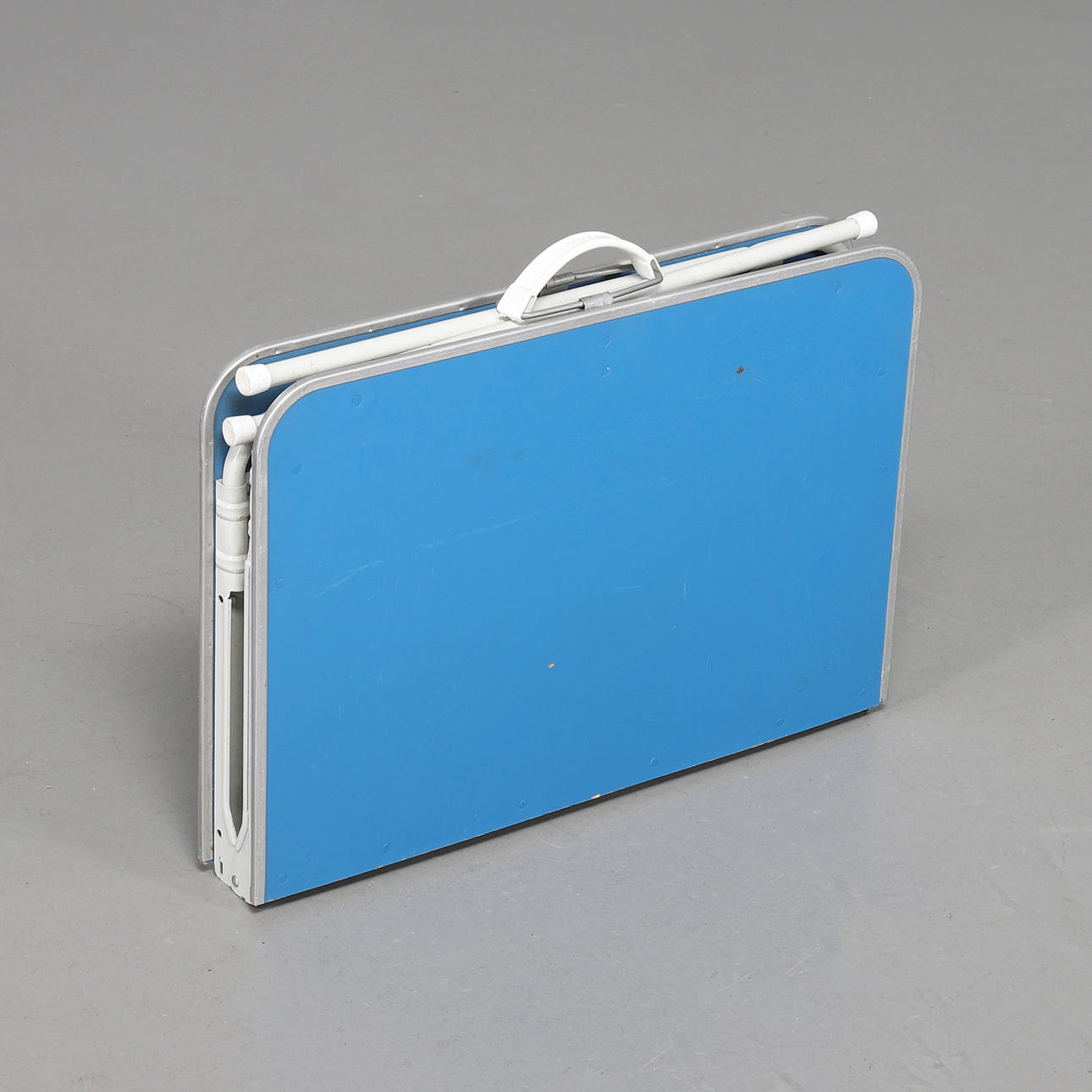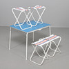 Picknickmöbel hopfällbar bestående av bord samt 4 pallar. Mått hopfällt 60 x 40 cm Bord: 80 x 60 cm, höjd 59 cm Pall: sitthöjd 40 cm.