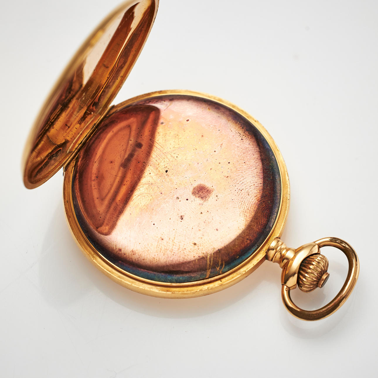 Vitemaljerad urtavla, innerboett i metall, savonett, boettnr. 53563, diameter ca 51 mm, vikt ca 101 g, etui.